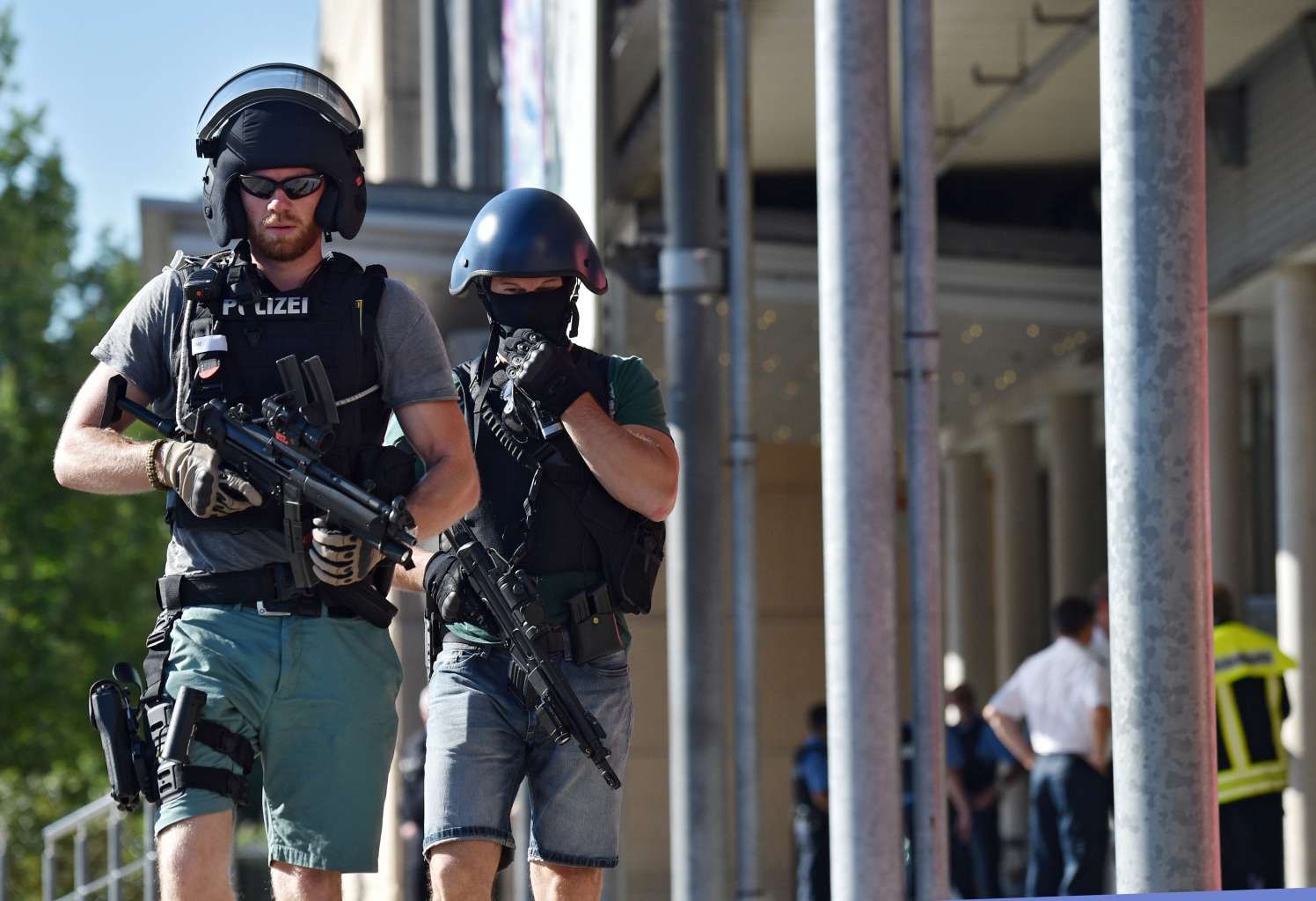 Officers of a special police unit leave the cinema centre in which an armed man had barricaded himself in Viernheim, Germany, on June 23, 2016.