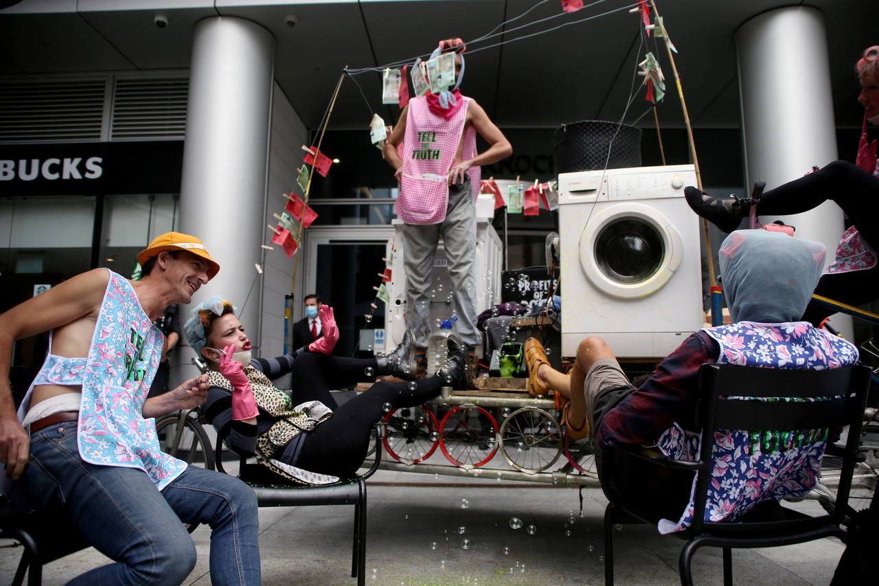 Extinction Rebellion climate activists stage a protest in London, on Sept 9, 2020.