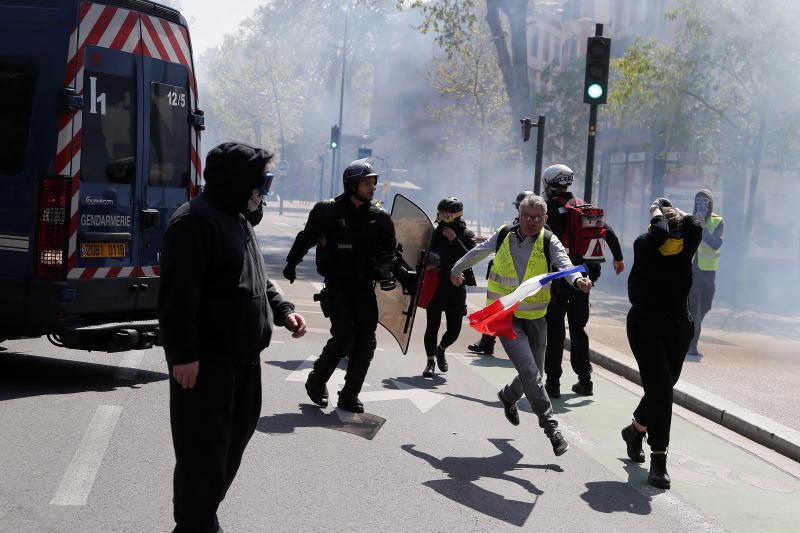 Protestors from the Yellow Vests movement clash with French riot Police during a demonstration in Toulouse, France, on April 13, 2019.