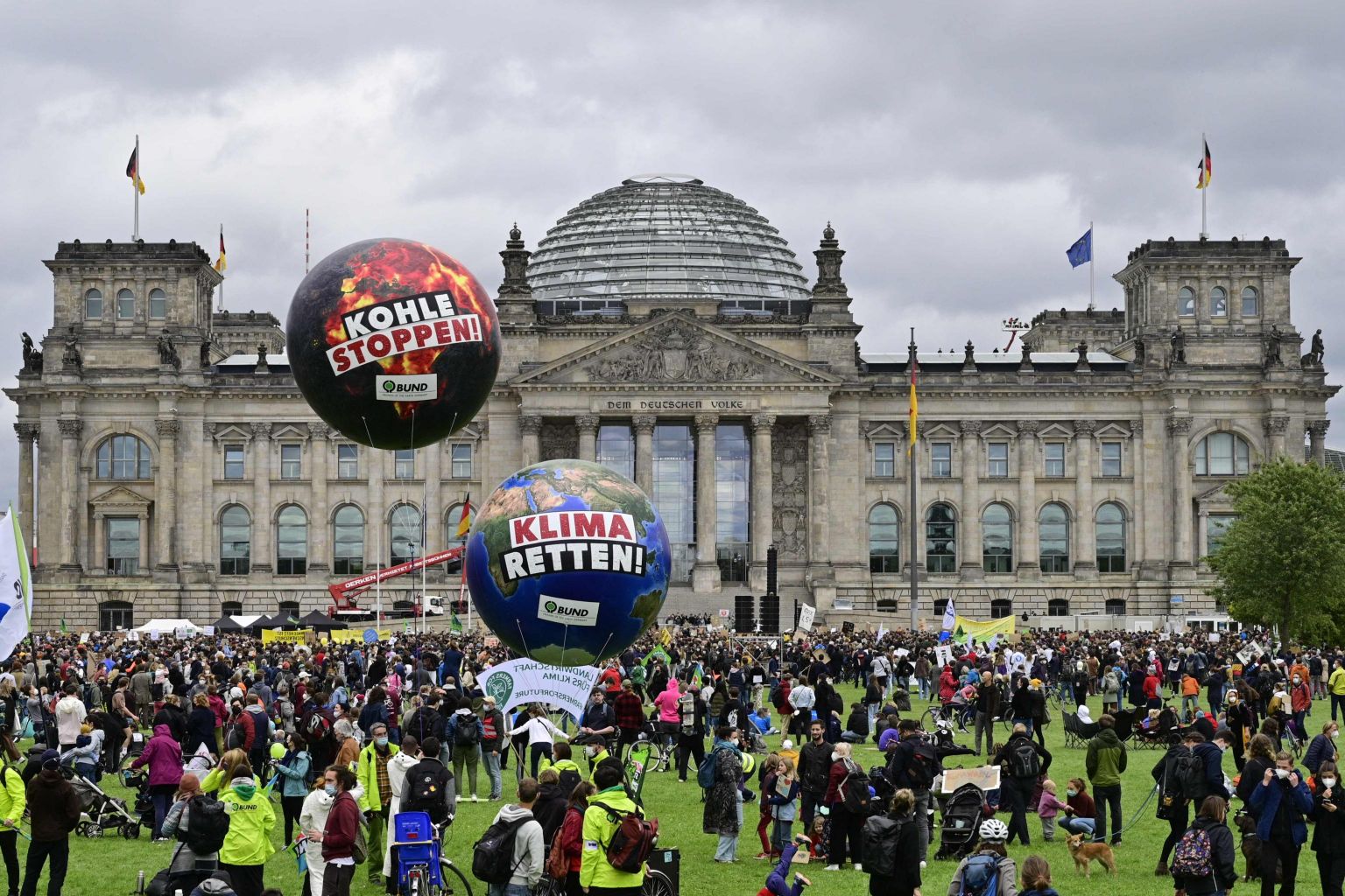 A climate strike in front of the building that houses the German federal Parliament in Berlin on Sept 24, 2021.