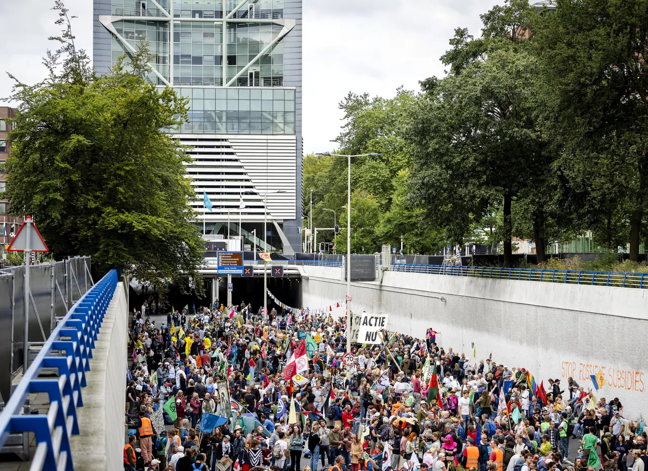 With policing of the protest light due to a strike, around 500 activists marched onto a highway that leads into the centre of The Hague, seat of the Dutch government, around midday.