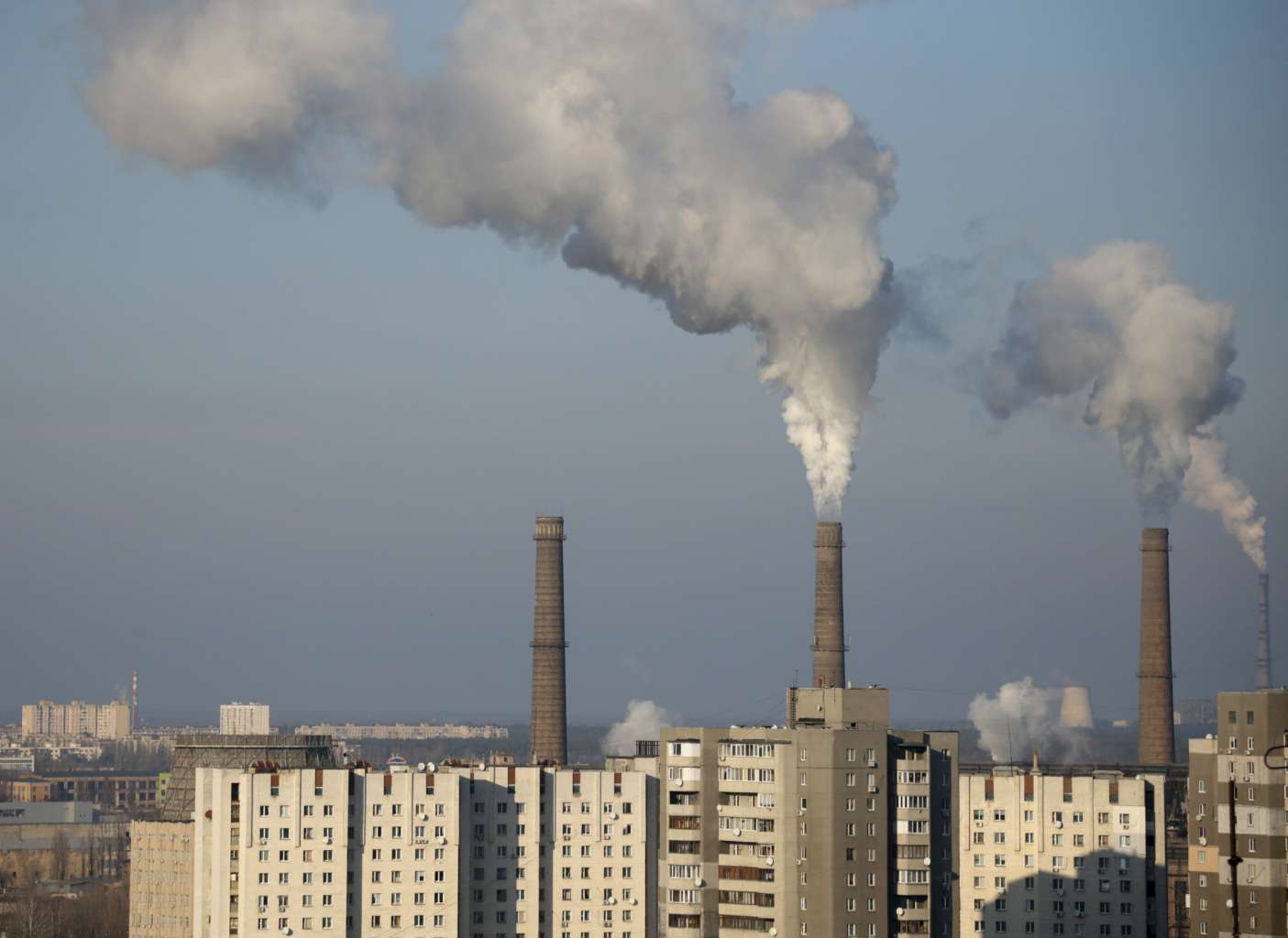 Smoke from pipes of an electricity generating plant rises over apartment buildings in Kiev, Ukraine.