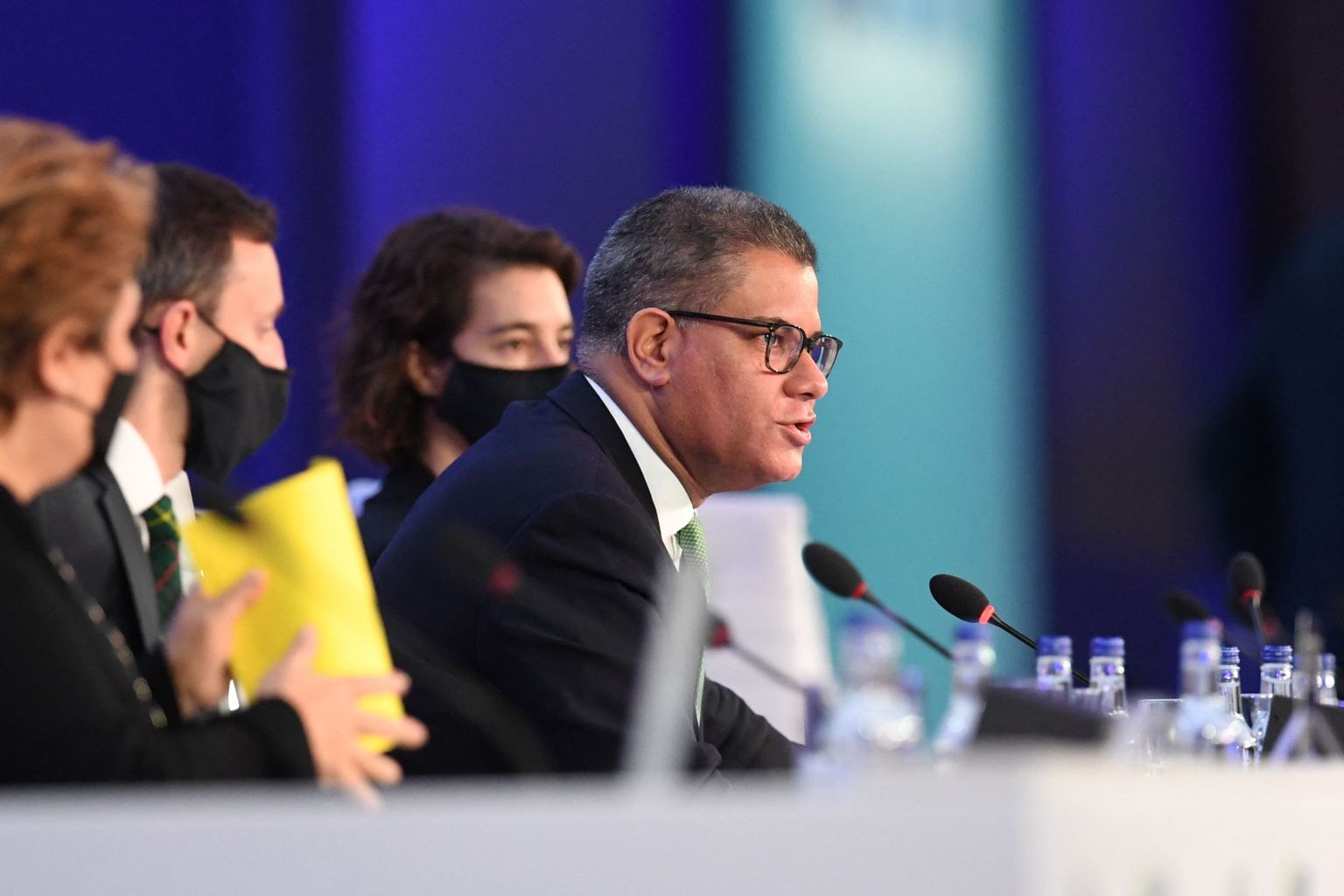 Britain's COP26 president Alok Sharma (centre) is pictured at the COP26 UN Climate Change Conference, on Nov 13, 2021.
