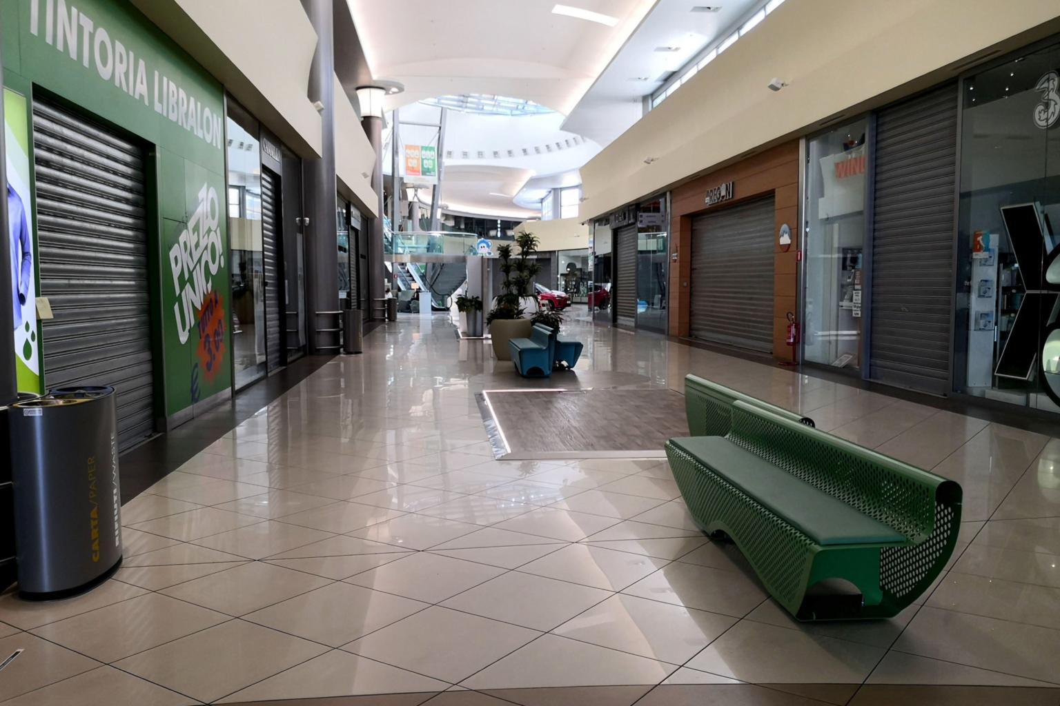 Closed shops inside a mall in Padua, northern Italy, on March 8, 2020.