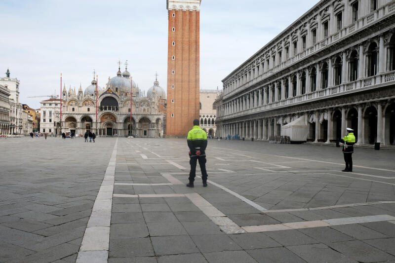The almost empty St Mark's Square is seen after the Italian government imposed a virtual lockdown on the north of Italy including Venice to try to contain a coronavirus outbreak, in Venice, Italy, on March 9, 2020.