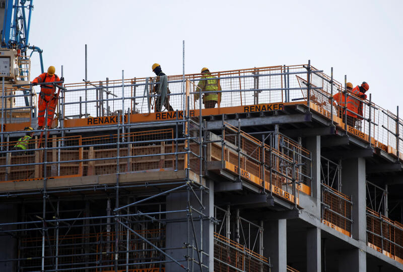Construction workers seen on a building in Manchester, as the spread of coronavirus continues, on March 25, 2020.