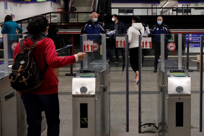 Commuters access Nuevos Ministerios train station as many return back to work in Madrid, on April 13, 2020.