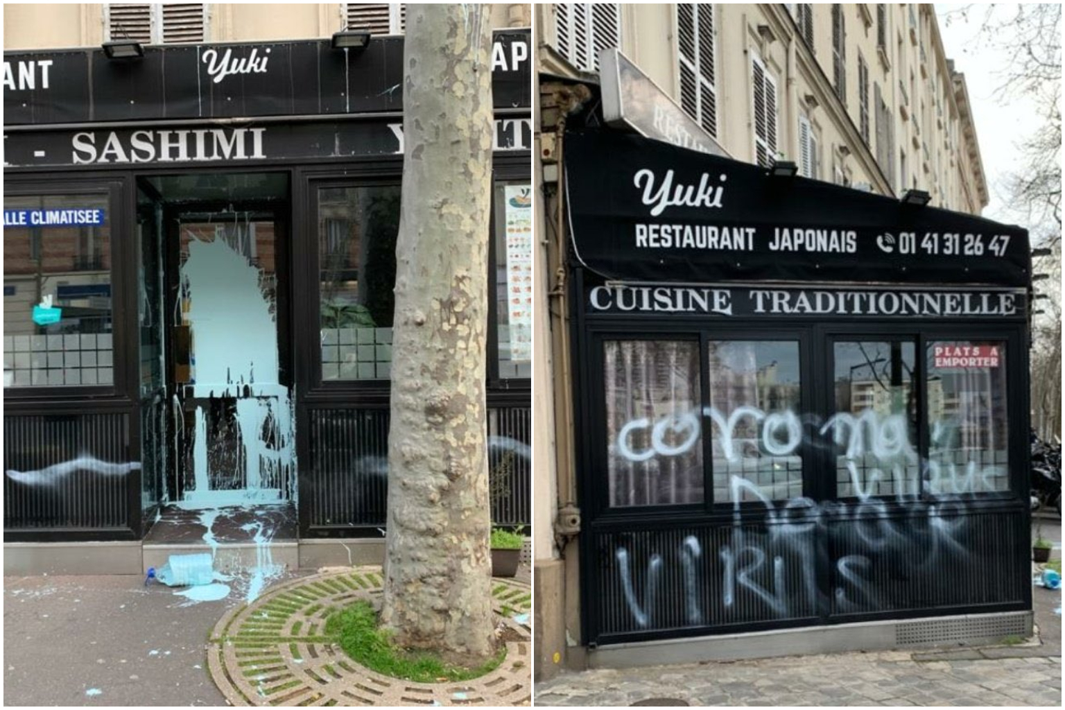'Coronavirus' sprayed on Japanese restaurant in Paris