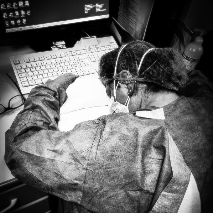 A photo of Italian nurse Elena Pagliarini slumped over her keyboard has gone viral.