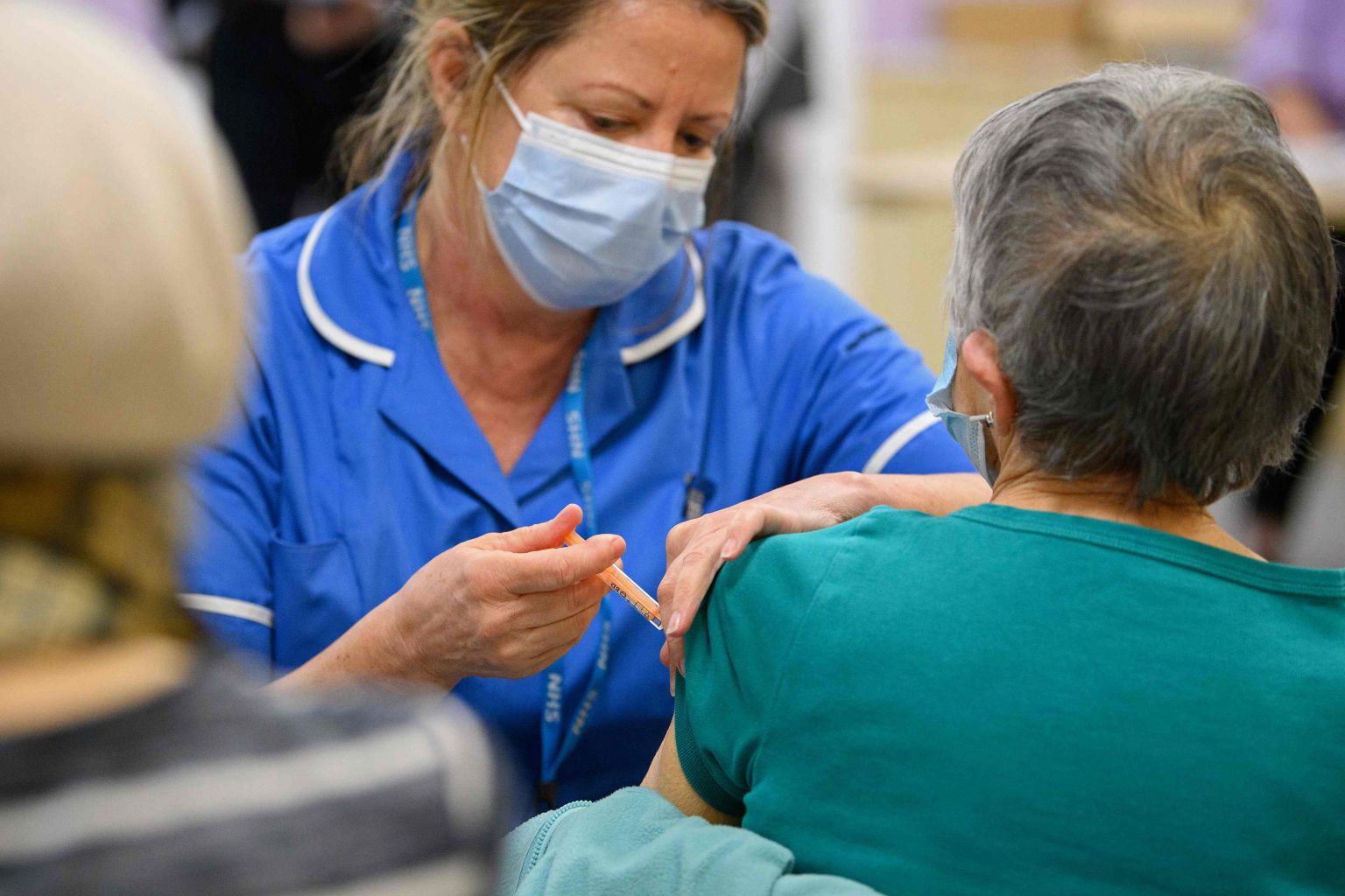 A nurse administers a Covid-19 vaccine shot at a vaccination centre near London on Jan 14, 2021.