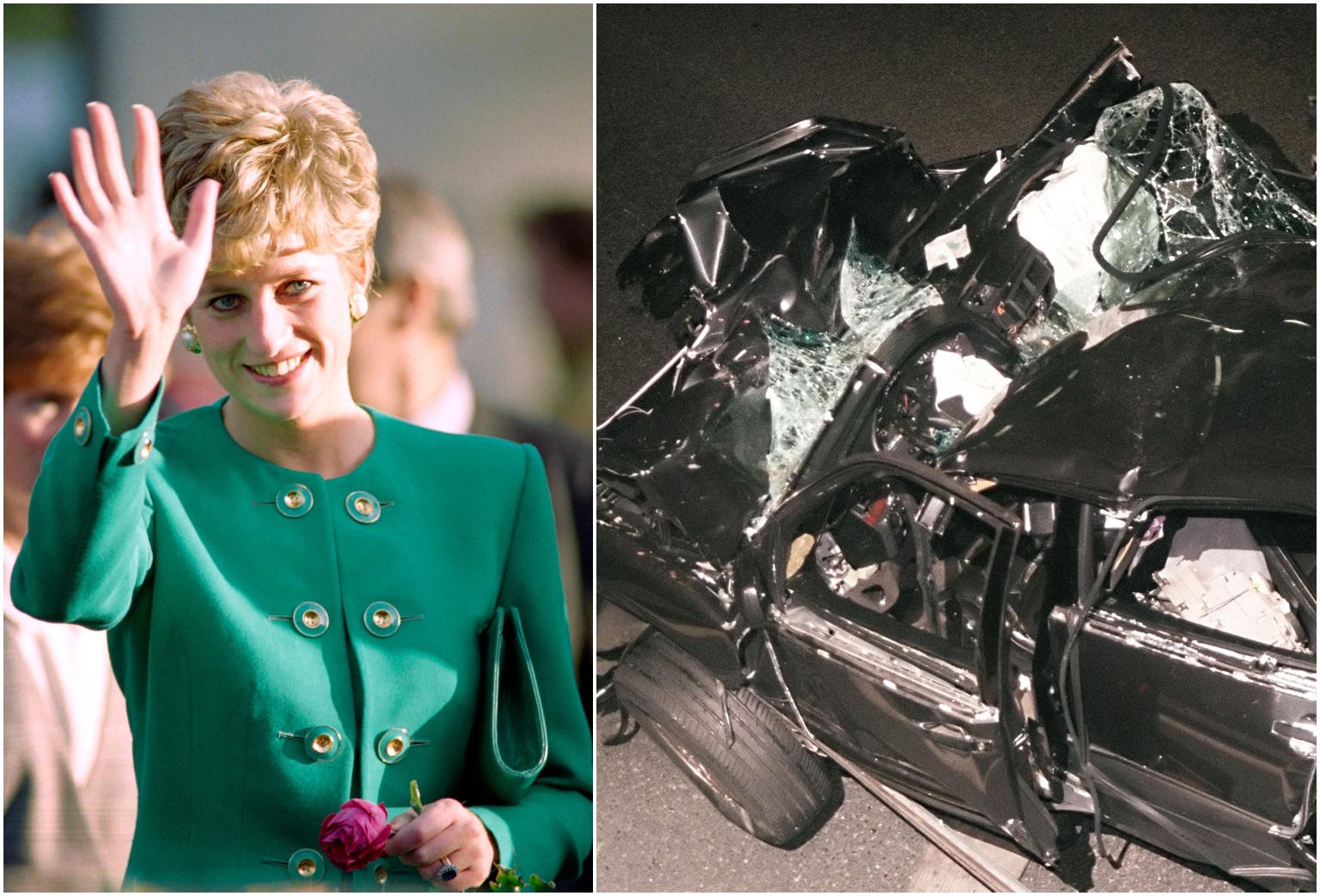 The wreckage of Princess Diana's car in the Alma tunnel of Paris on Aug 31, 1997.