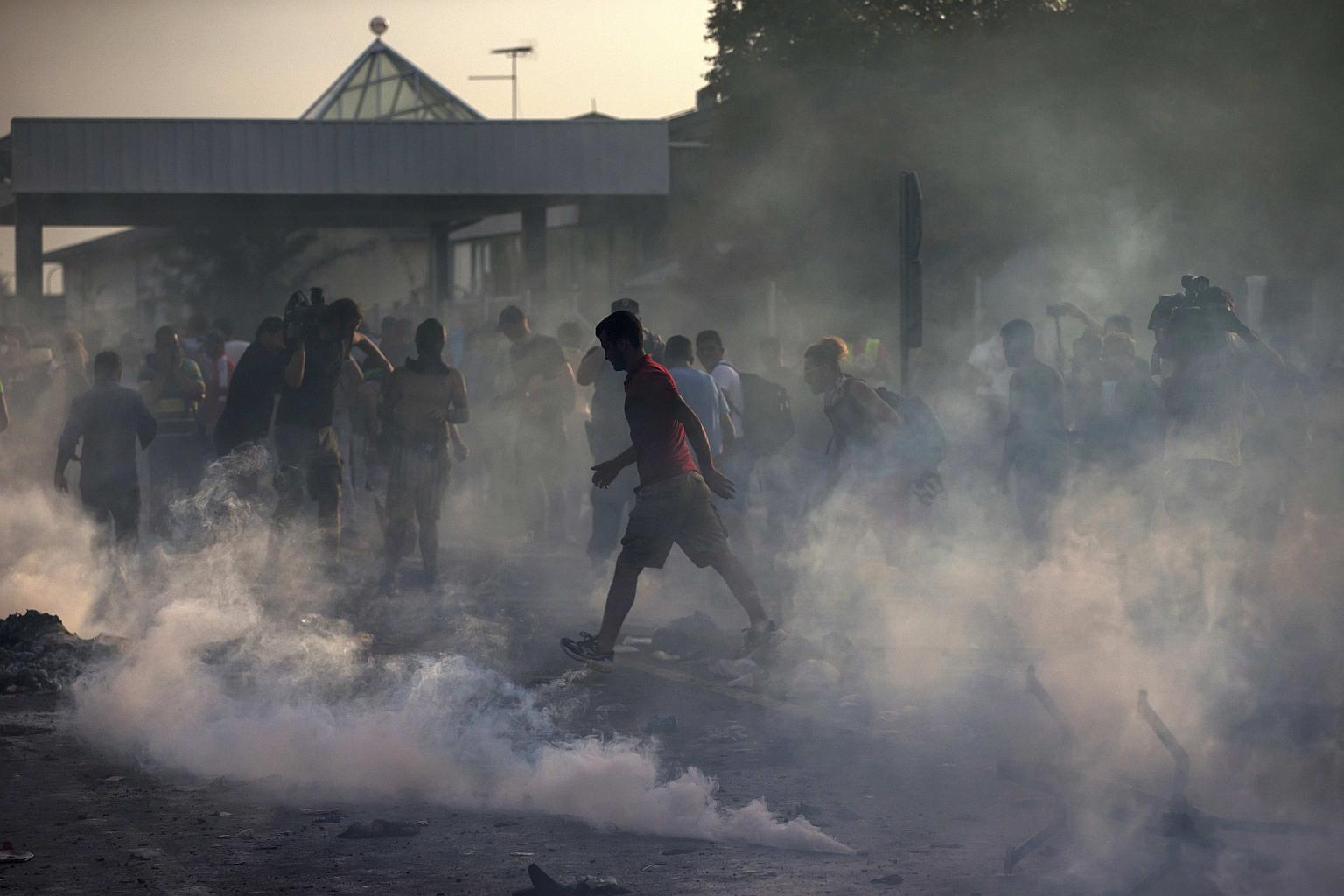 Fourteen police were injured in Wednesday's clashes, officials said, with 10 arrested for "illegal border-crossing" and facing three-year jail terms under harsh new anti-migrant laws.