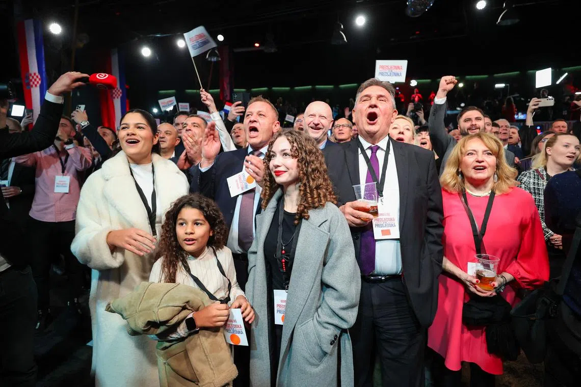 Supporters of Croatian President Zoran Milanovic celebrating after the first exit poll results in Zagreb on Jan 12.