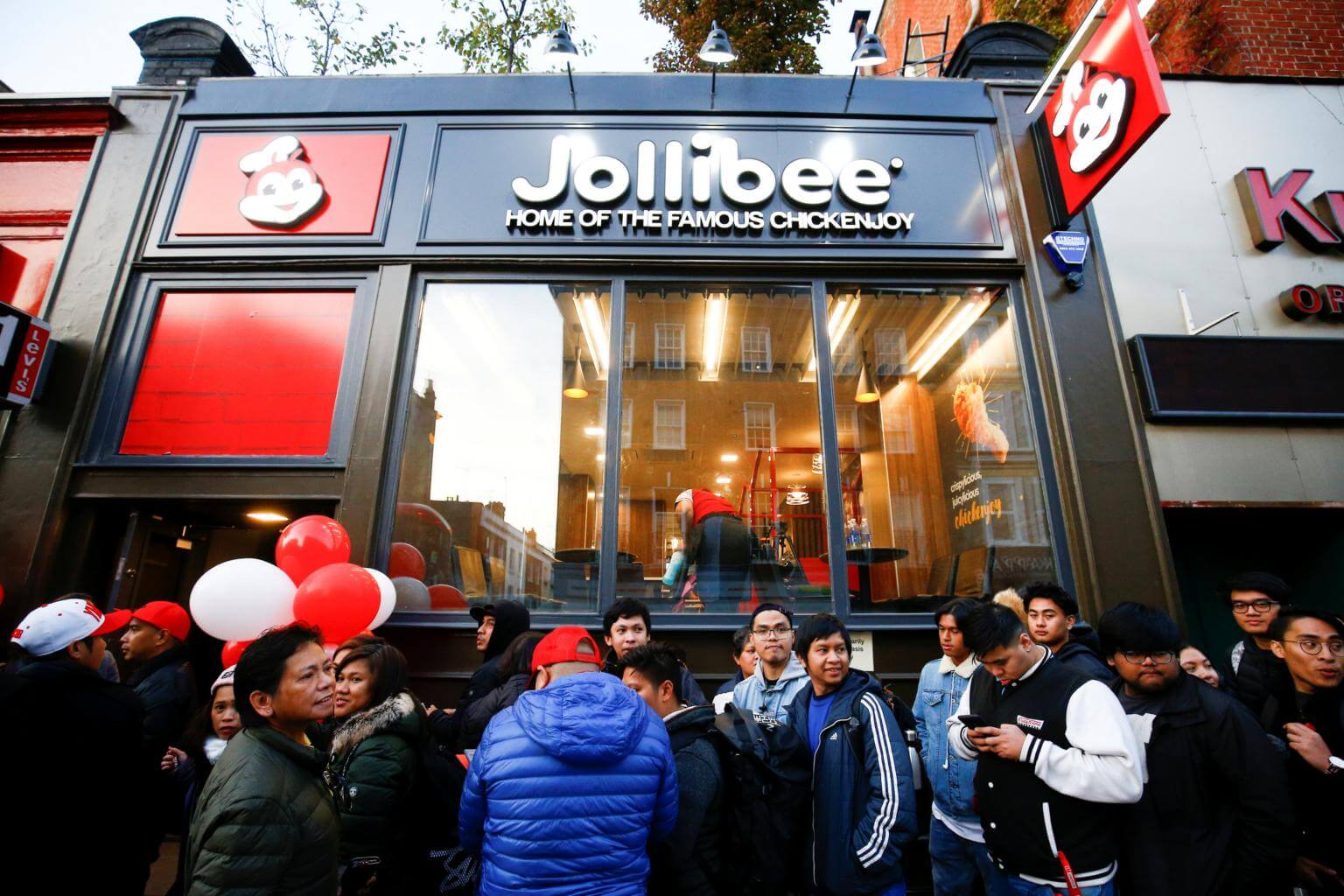 Crowds brave London chill for Philippine fast-food giant Jollibee's British debut