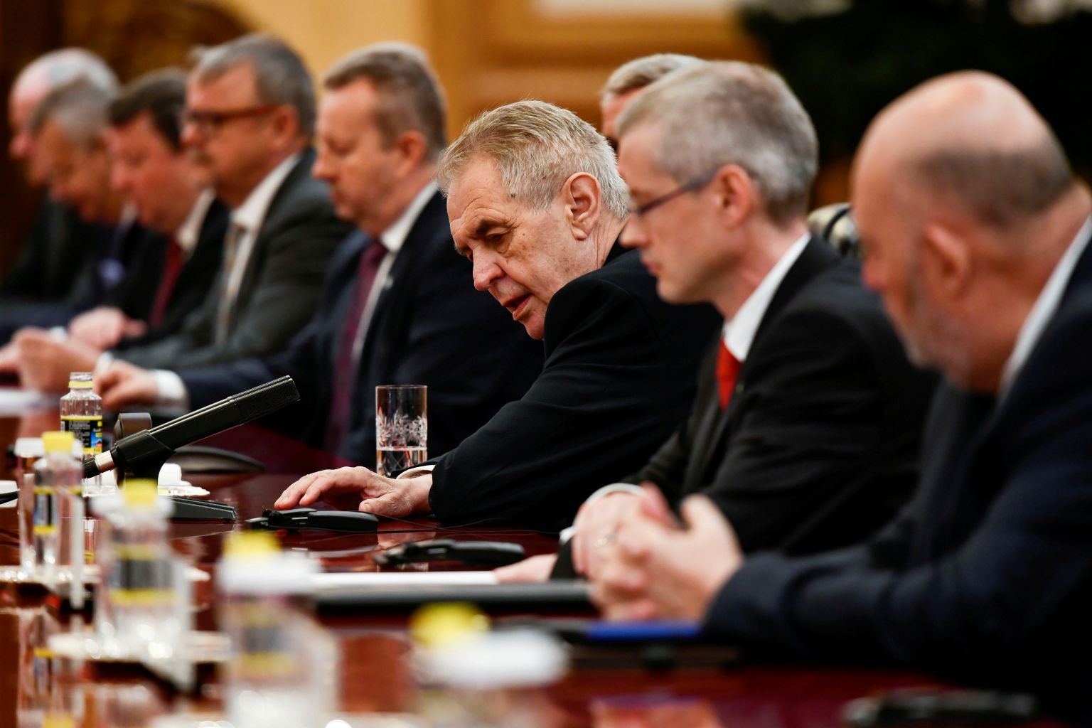 IN a 2019 photo, Czech President Milos Zeman (centre) speaks during a meeting with China's President Xi Jinping (not pictured) in Beijing.
