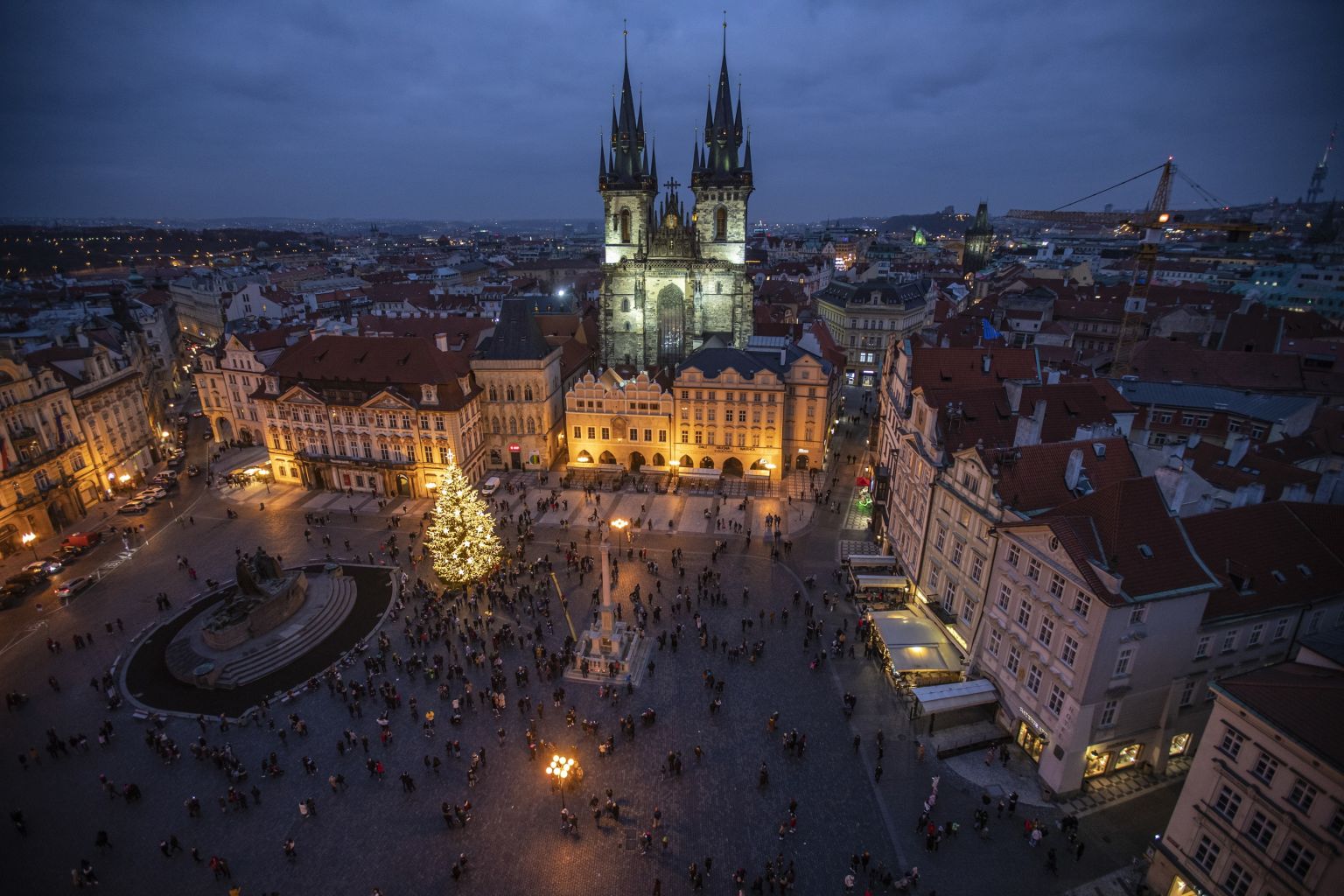 Czech media said the boy was lucky his fall was broken by the roof over the building's entrance.