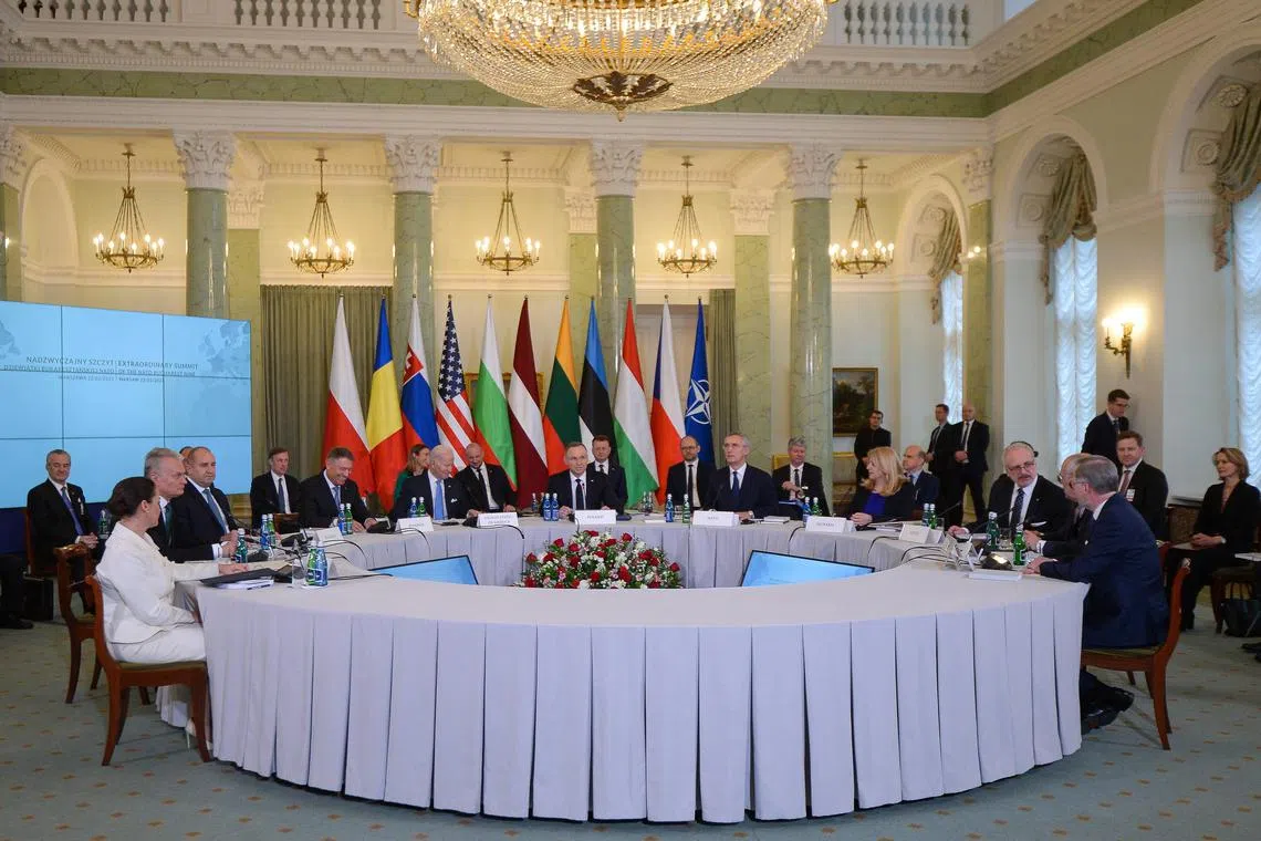 Leaders attend the Bucharest Nine summit at the Presidential Palace in Warsaw, Poland, on Feb 22, 2023.