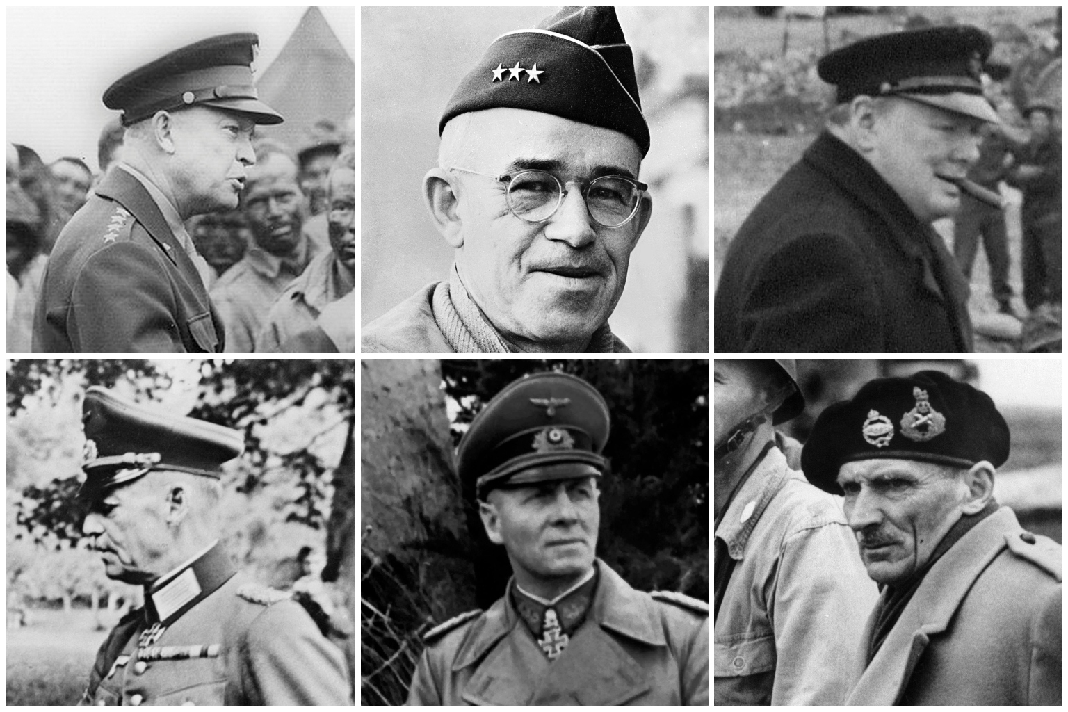 (Clockwise from top left) General Dwight Eisenhower, General Omar Bradley, Winston Churchill, Field Marshal Bernard Montgomery, Field Marshal Erwin Rommel and Field Marshal Gerd Von Rundstedt.