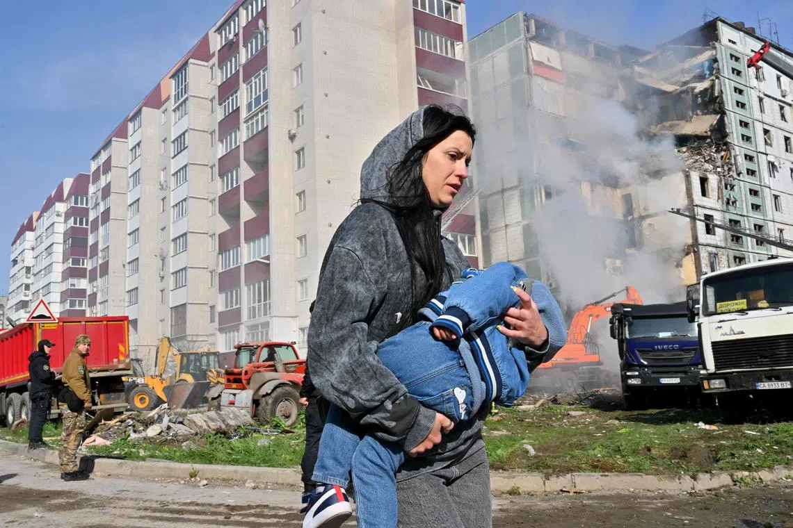 UMAN, Ukraine – Mr Dmytro raced to the room where two of his children had been sleeping, after a Russian missile thundered into his apartment building in Uman, Ukraine, before dawn on Friday.