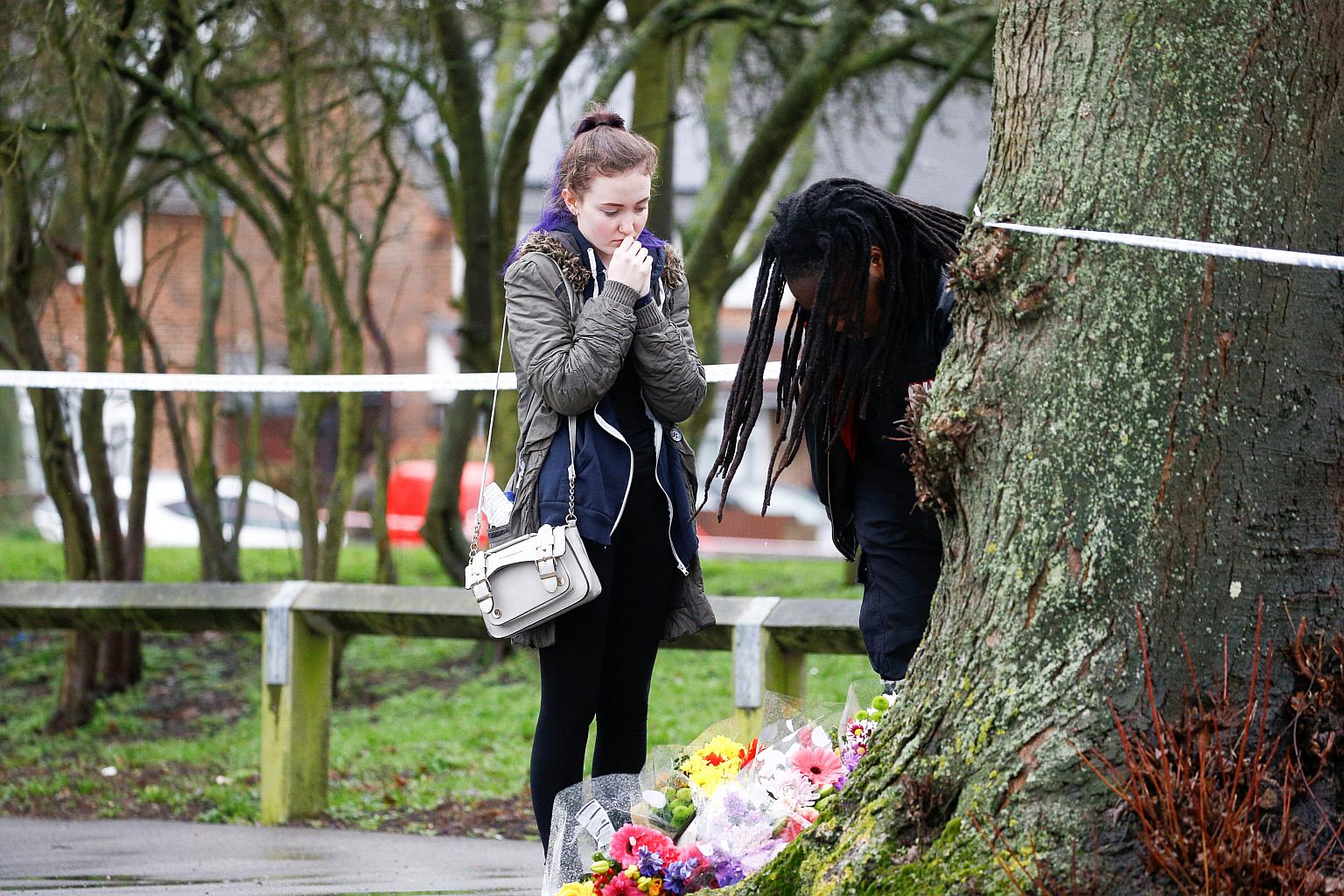 People visit the area close to where 17-year-old Jodie Chesney was killed, at the Saint Neots Play Park in Harold Hill, east London on March 3, 2019.