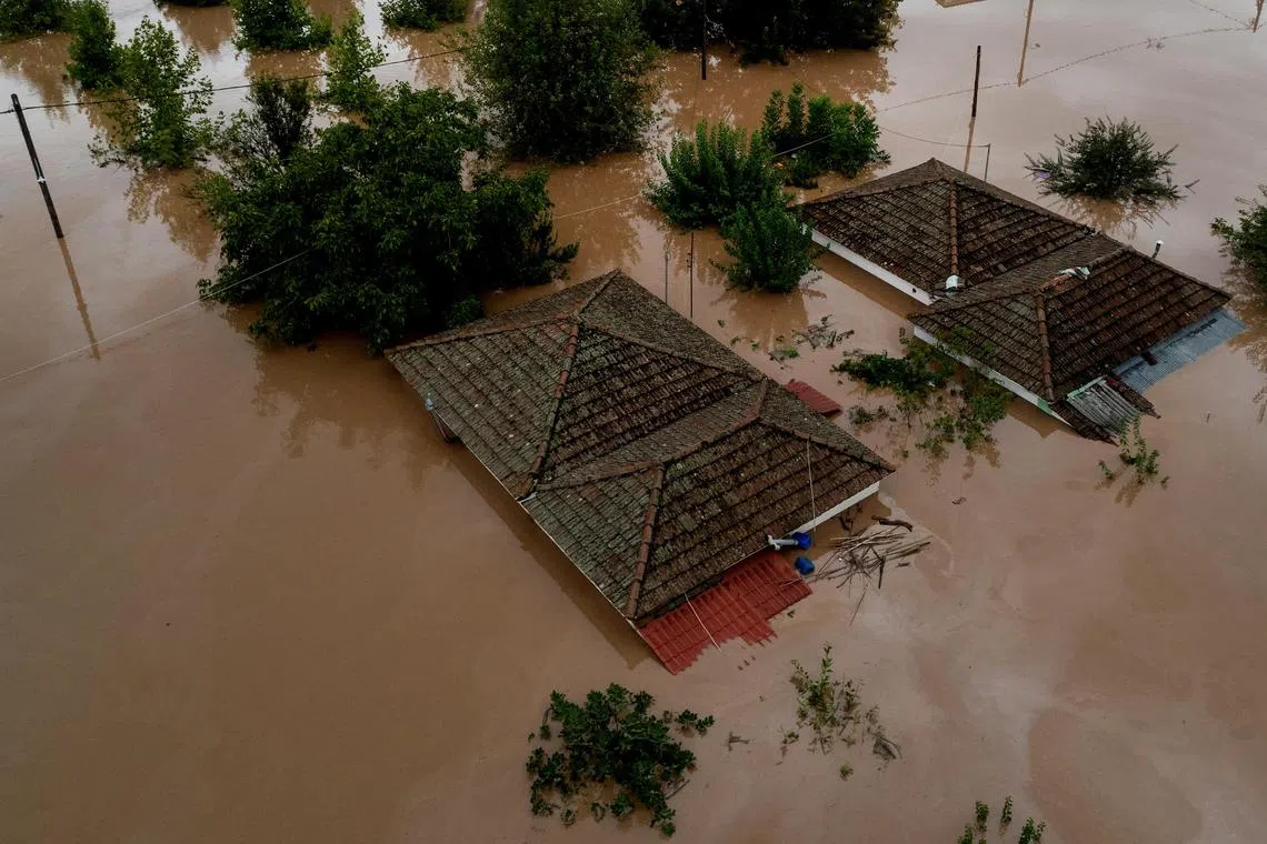 Reuters footage showed houses submerged in flood water in the Trikala region.