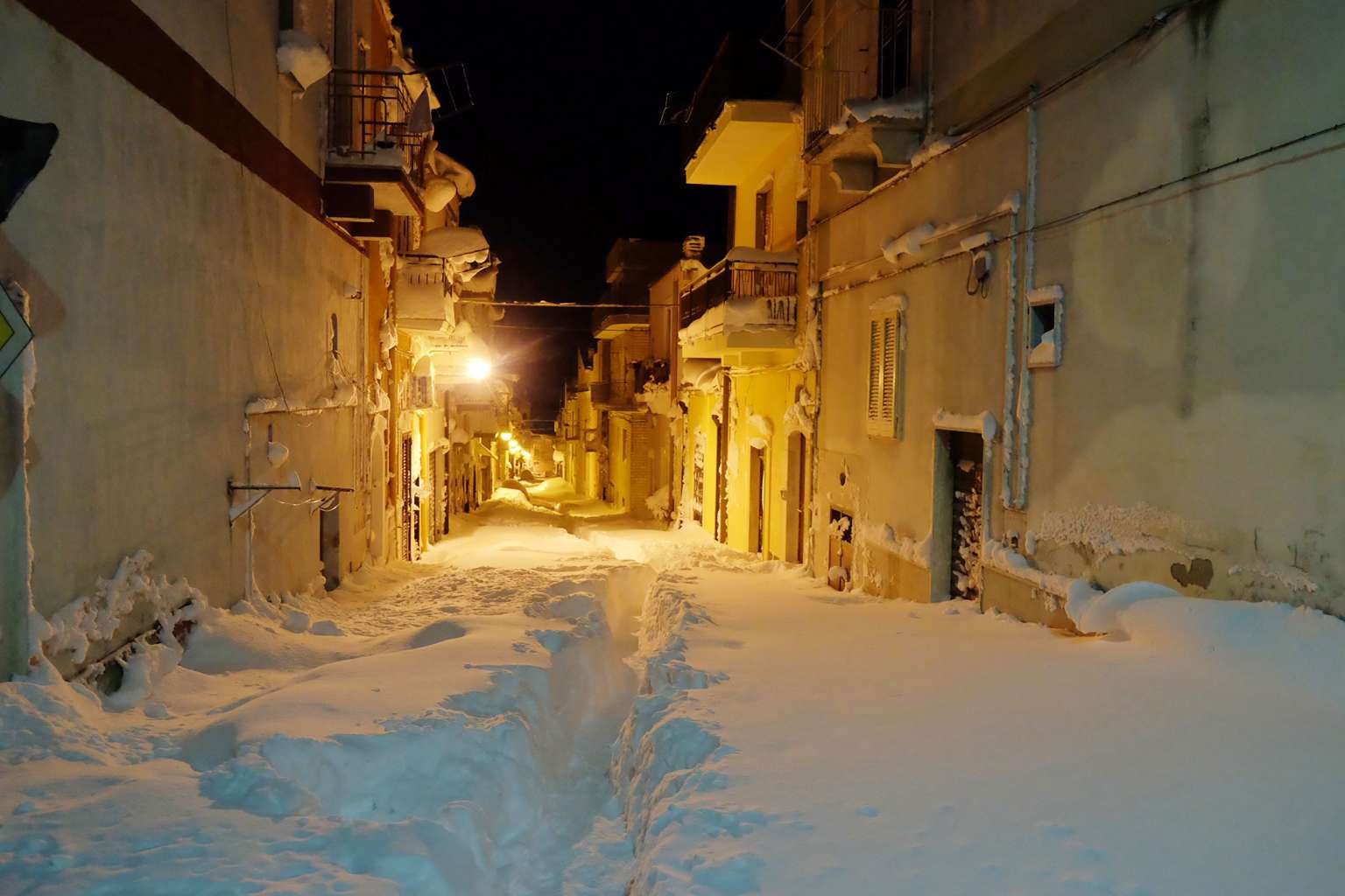 A street is covered by snow in Santeramo in Colle on Jan 8, 2017 after snowfalls near Bari, in the Puglia region of southern Italy.