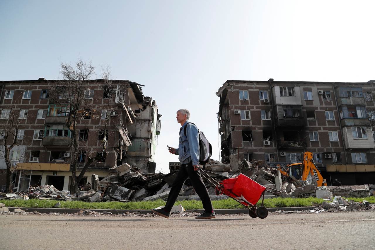 A damaged apartment building in Mariupol, Ukraine, on April 19, 2022.