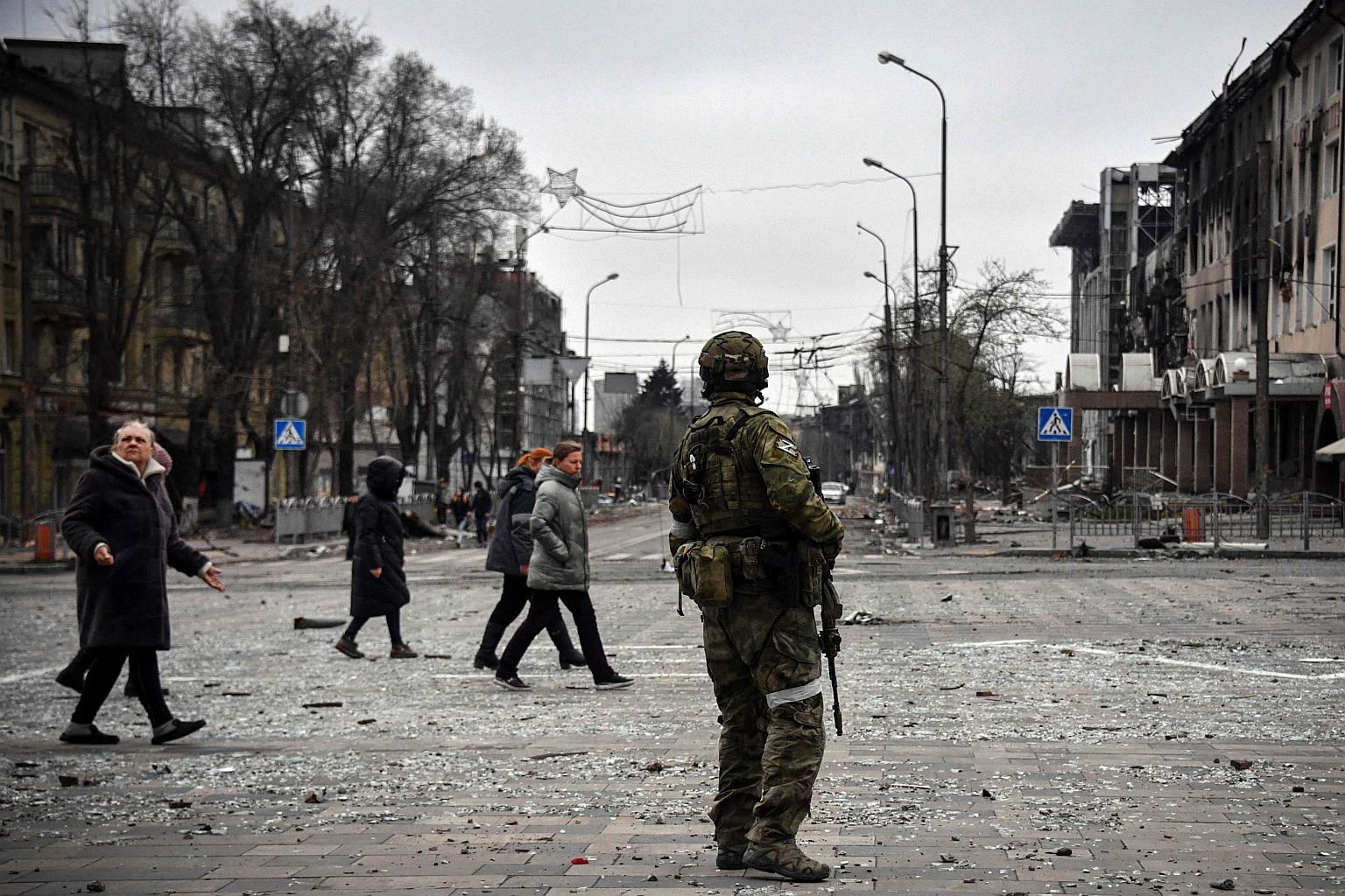 A Russian soldier in Mariupol in April. Russia is using what some call a "stealth mobilisation" to bring in new recruits.
