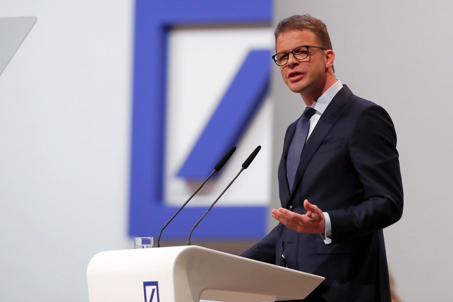 Deutsche Bank CEO Christian Sewing delivers a speech during the annual shareholder meeting in Frankfurt on May 23, 2019.