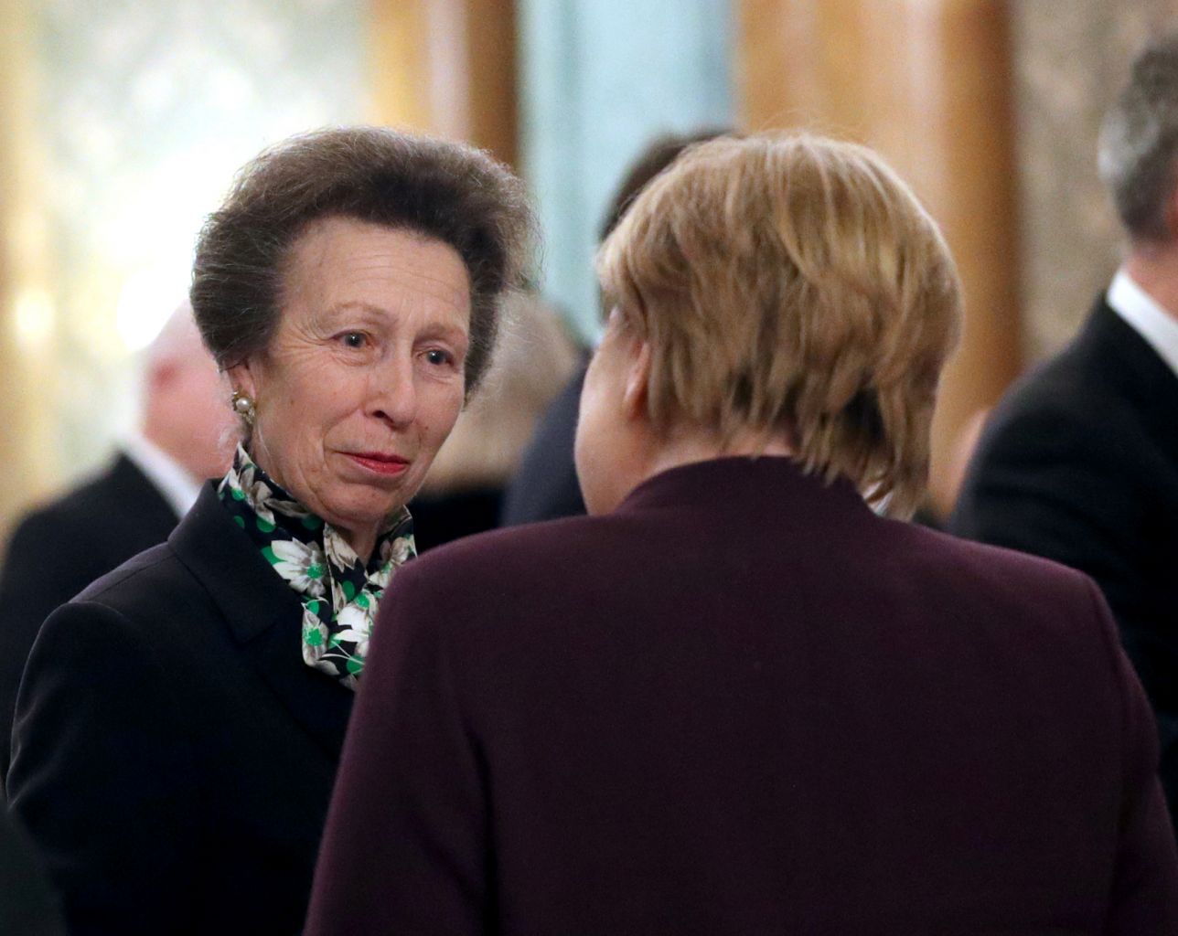 Princess Anne (left) talks to German Chancellor Angela Merkel during a reception at Buckingham Palace to mark 70 years of the Nato alliance.