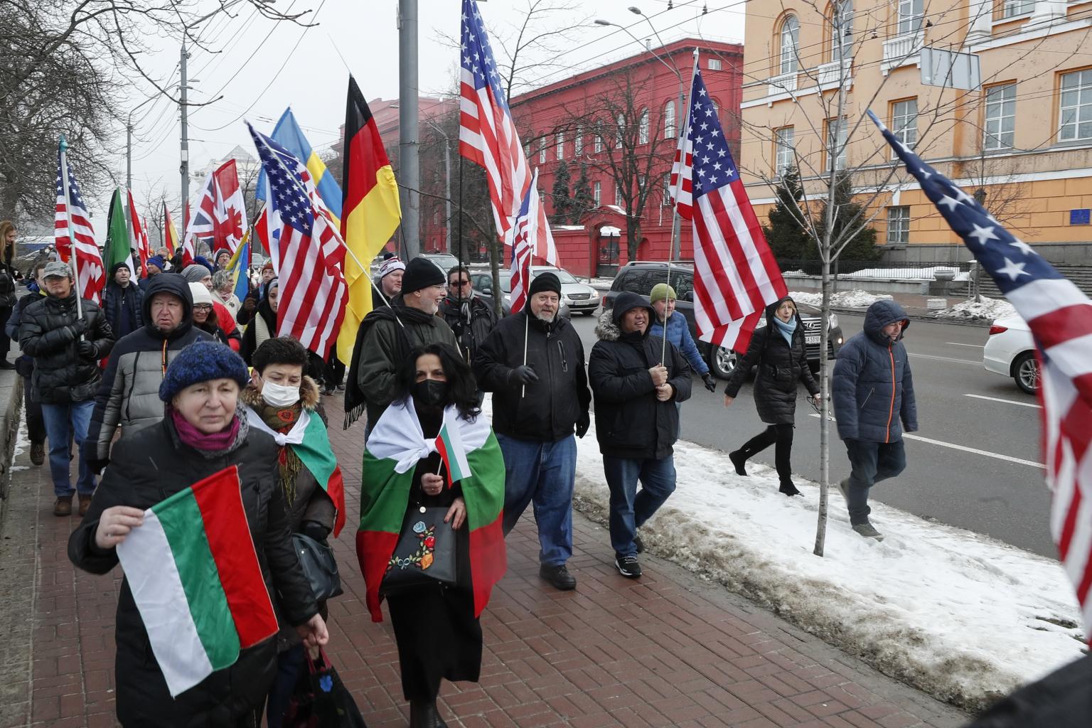 A demonstration in Ukraine in support of the country amid fears of escalations with Russia.