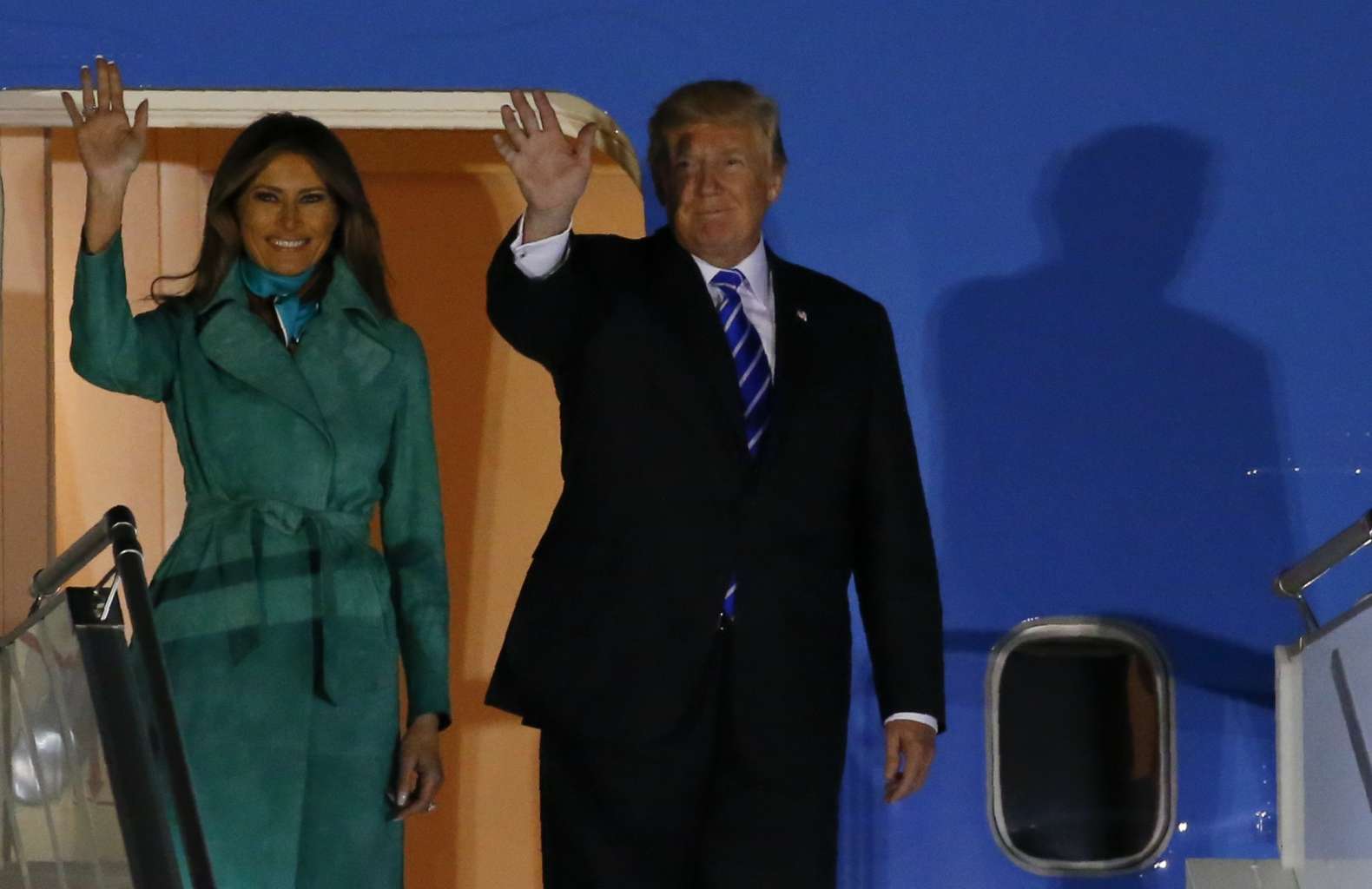 Donald Trump and First Lady Melania Trump arrive at Warsaw military airport, July 5, 2017.