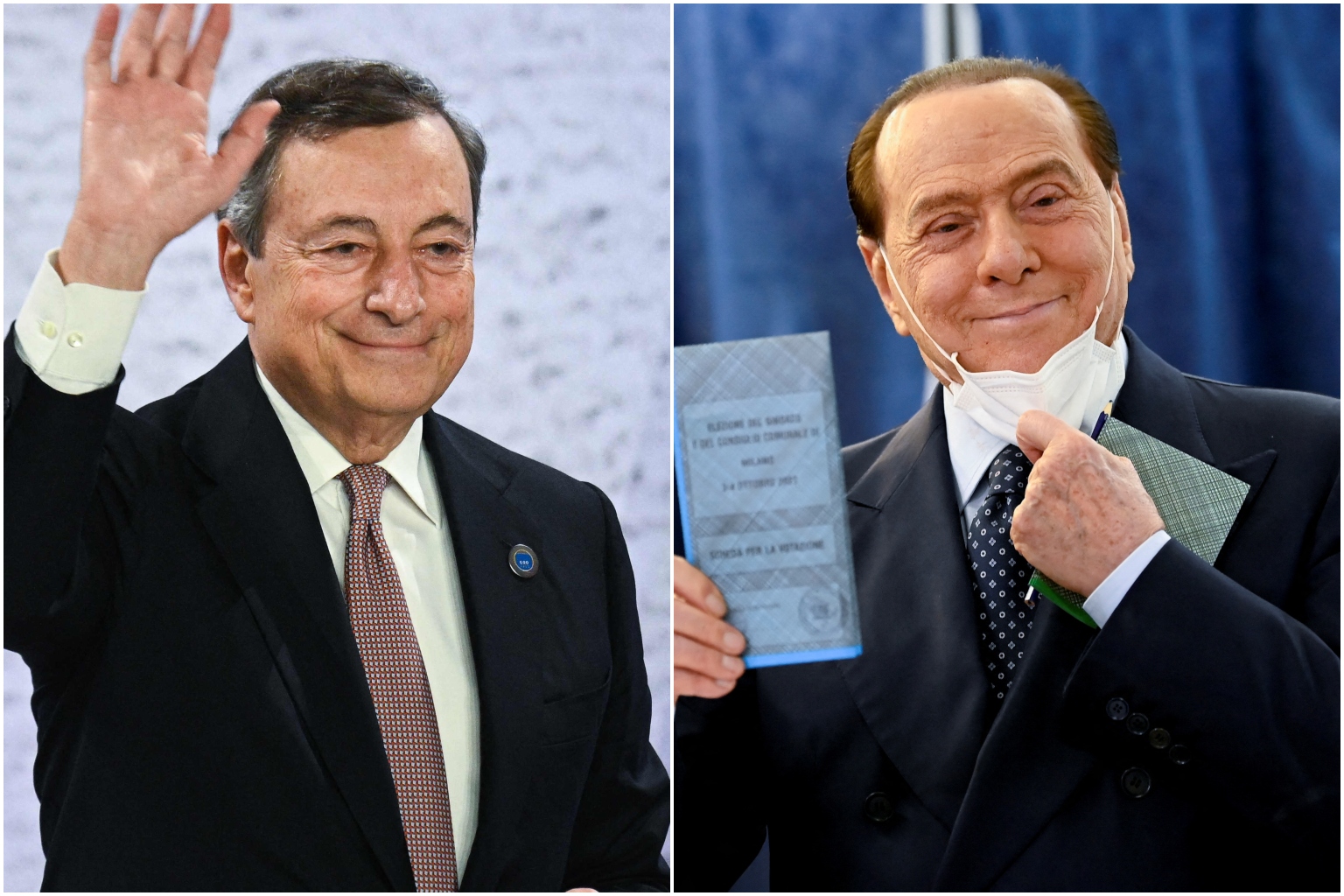 Italian Prime Minister Mario Draghi (left) and billionaire Silvio Berlusconi.