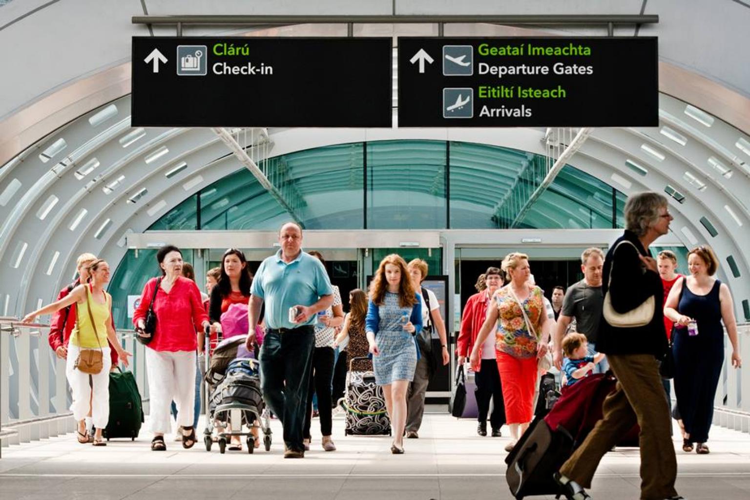 Travellers at Dublin airport. Drones are prohibited from operating within 5km of Irish airports during periods of aircraft operations.