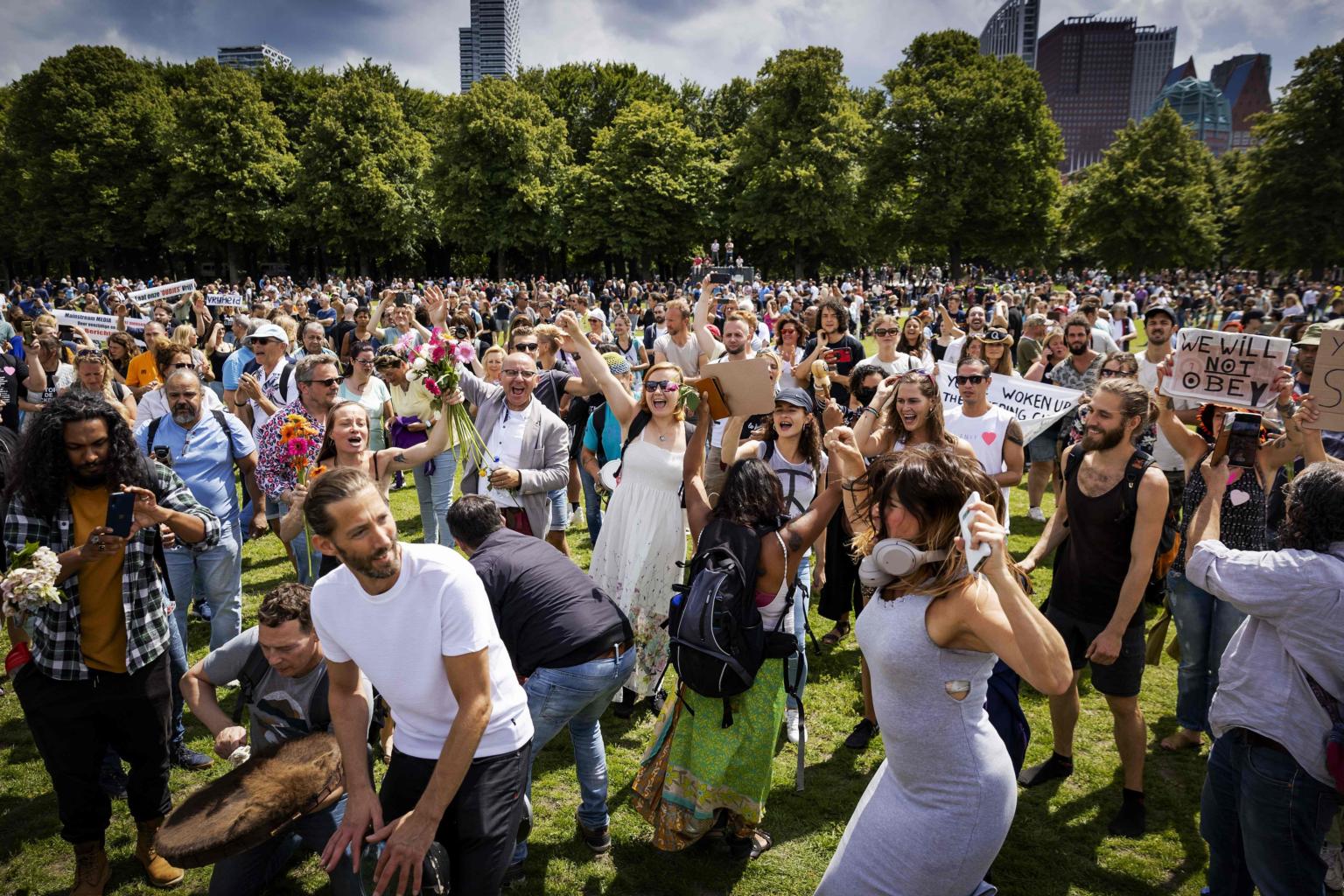 Protesters demonstrate against the government's handling of the pandemic in The Hague on June 21, 2020.