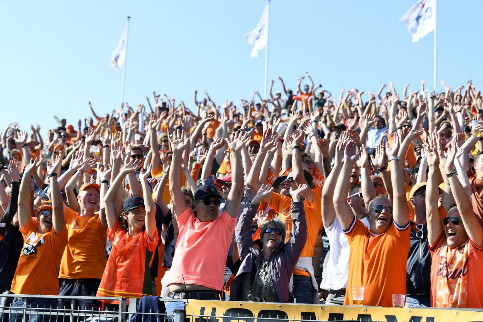 Fans celebrate as Red Bull's Max Verstappen qualifies in pole position for the Dutch grand prix in Zandvoort, on Sept 4, 2021.