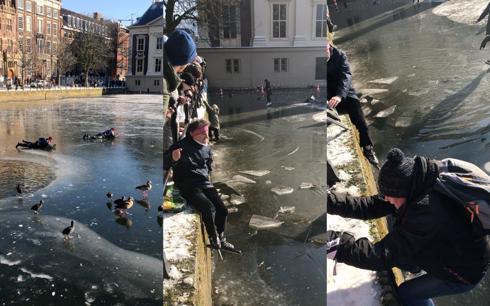 The city council of The Hague issued a more specific warning for no one to skate on the Hofvijver pond because the ice was too thin - several people had already fallen in trying.