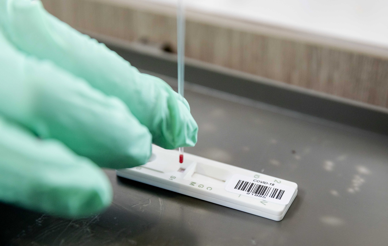 A health worker runs a test for antibodies in Oss, The Netherlands, on April 15, 2020.