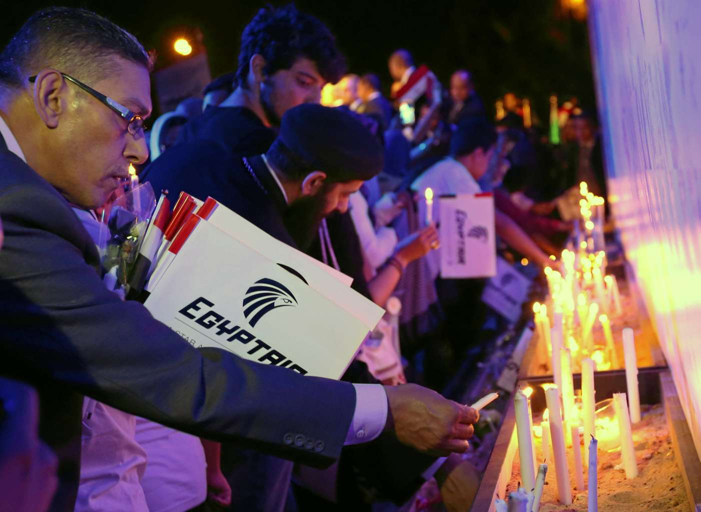 People light candles during a candlelight vigil for the victims of EgyptAir flight 804, at the Cairo Opera House in Cairo, Egypt on May 26, 2016.