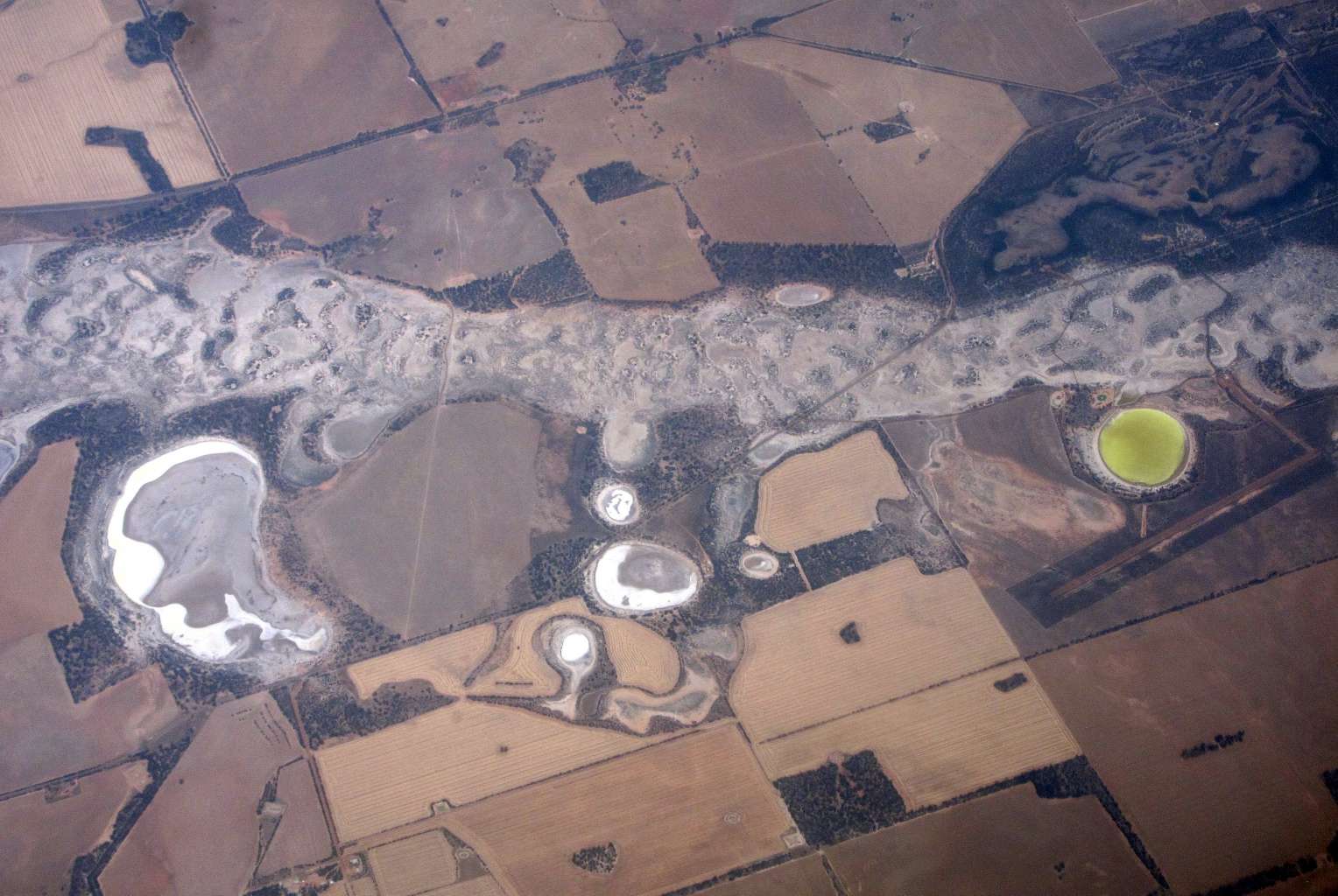 Salt pans and dams are scattered across drought effected farmland in Western Australia, on Nov 12, 2015.