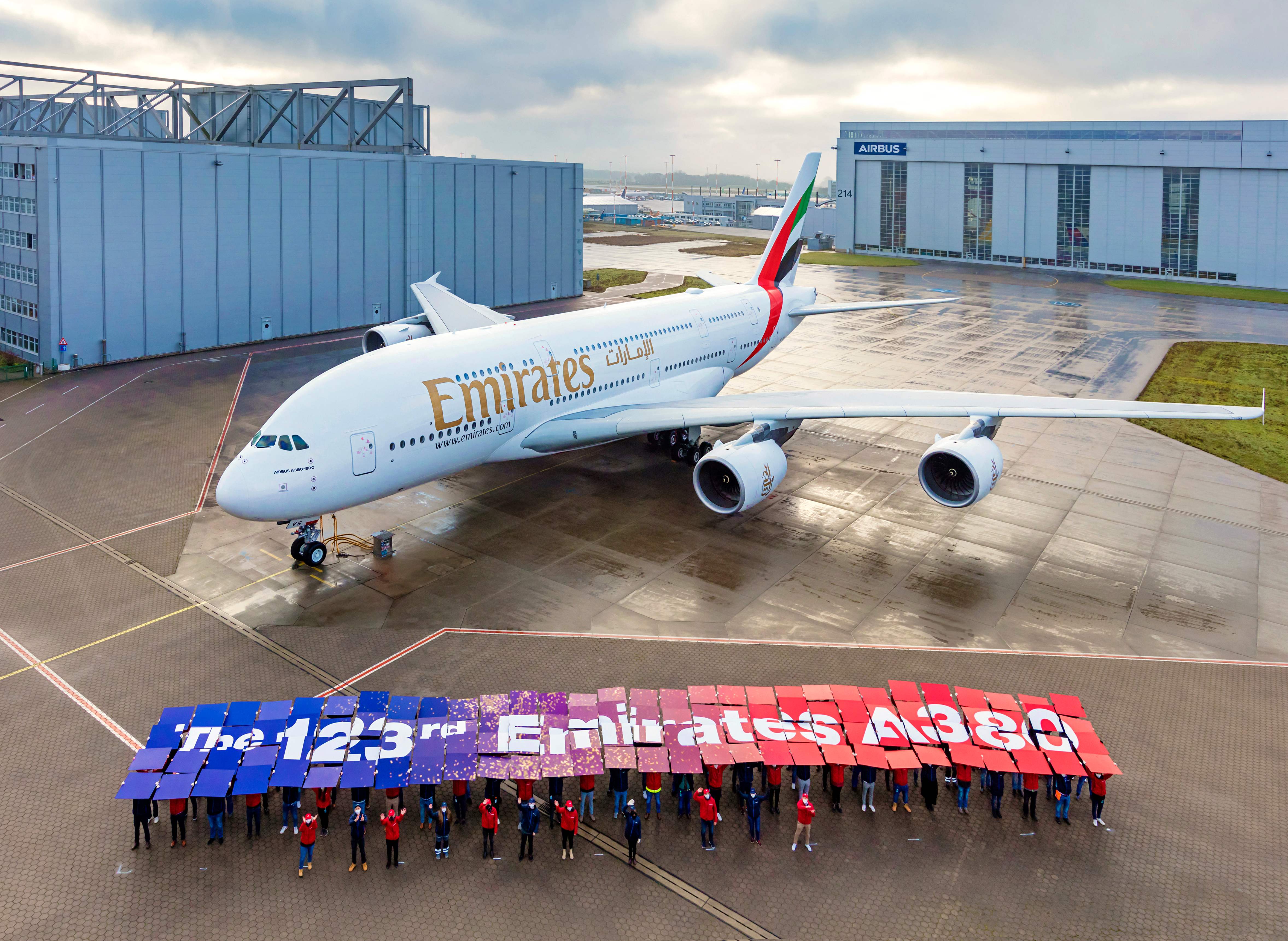 An Emirates photo shows the final Airbus A380 jet upon its arrival in Dubai, on Dec 16, 2021.
