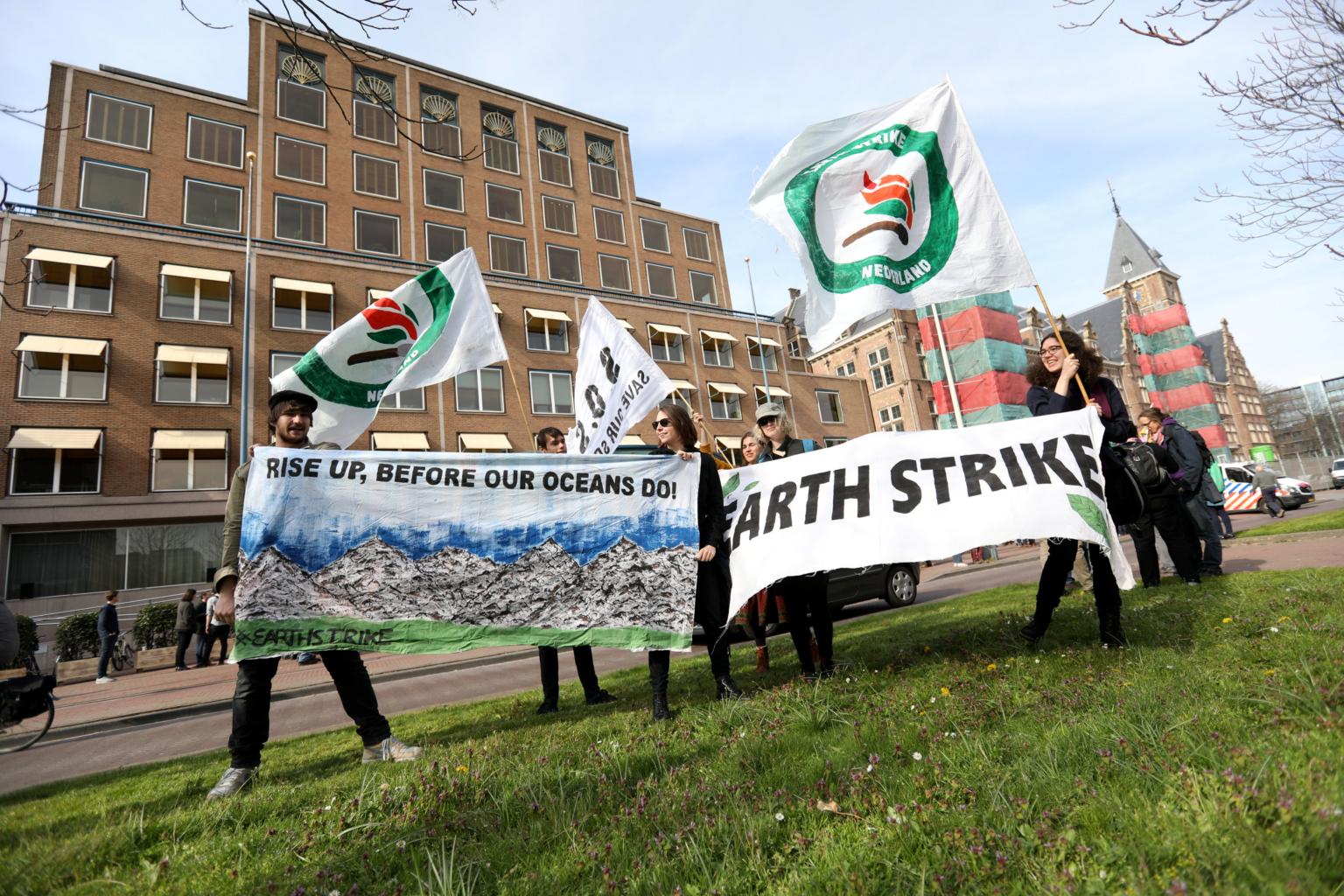 Environmentalist and human rights groups demand Royal Dutch Shell to stop the extraction of oil and gas, outside of its headquarters in The Hague, Netherlands, on April 5, 2019.