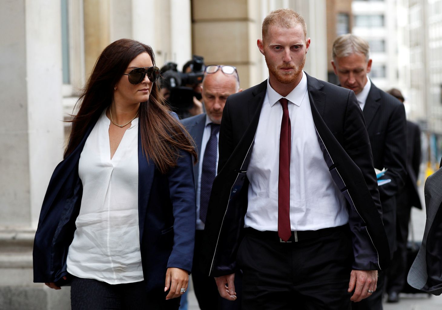 England cricket player Ben Stokes and his wife Clare Ratcliffe leave Bristol Crown Court.