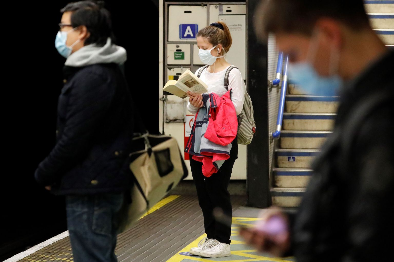 During the morning rush hour in London, commuter trains appeared busier than in past weeks, though still far from pre-pandemic overcrowding. Many people wore face masks, and made noticeable efforts to observe distancing.