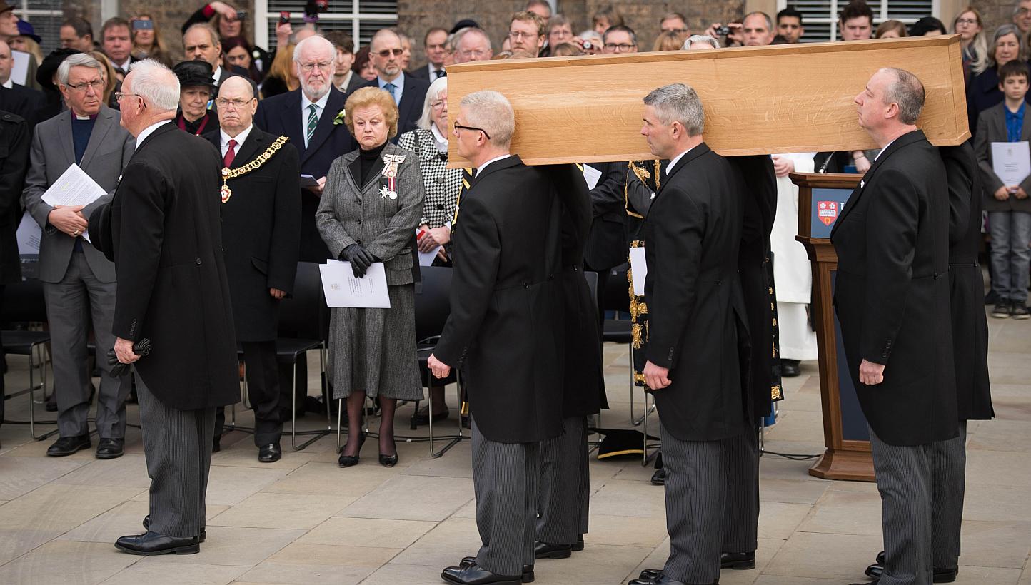 Archaeologists who worked on excavating Richard III's remains and his descendants laid white roses - the symbol of his royal house - on the coffin before it set off.