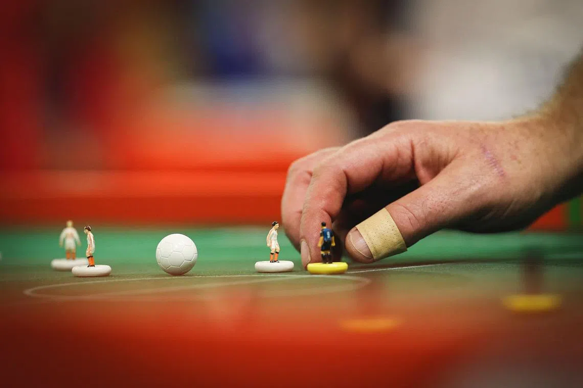This is achieved by flicking the tiny players, who either have a flat or semi-circular base, into the ball and manoeuvring it into goal-scoring positions.