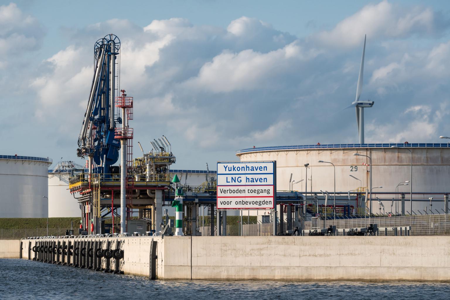 Liquid natural gas delivery pipework and silos stand at the Port of Rotterdam in Netherlands, on Sept 4, 2019.