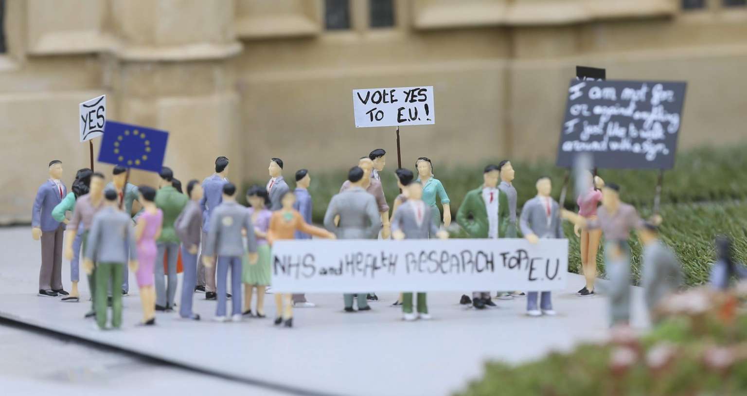 Figurines in front of a model of the British Parliament at the Mini-Europe park in Brussels on June 20.