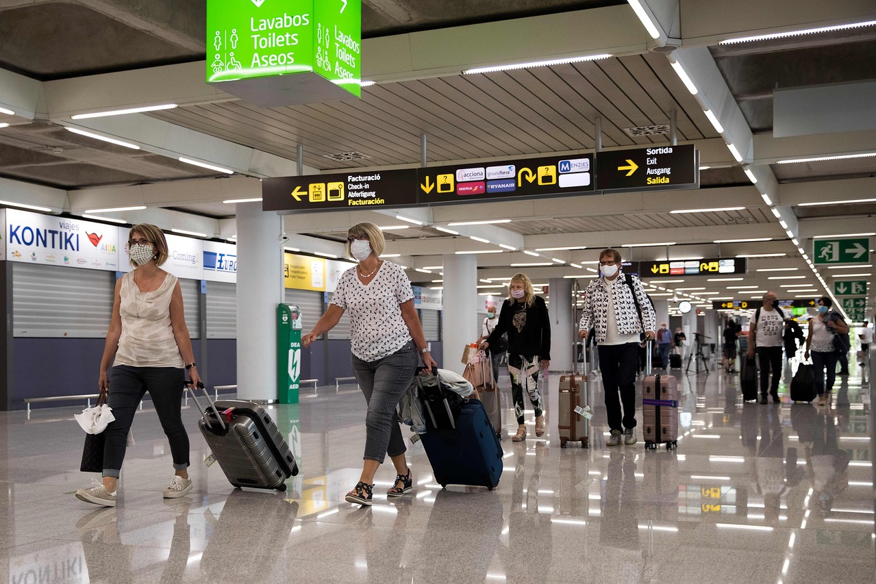 Tourists arrive at Son Sant Joan airport in Palma de Mallorca, on June 22, 2020.