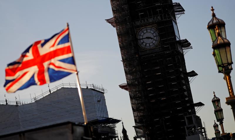 A Union flag flies from a pole near the Elizabeth Tower, commonly known as Big Ben, at the Houses of Parliament in central London, on Jan 28, 2019.